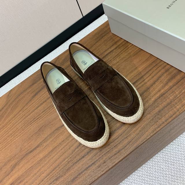 / BRUNELL* CUCINELL* 男款麻绳底乐福鞋。简约时尚。鞋面牛京,牛皮内里,高密度弹力乳胶 可拆卸独立高弹力乳胶鞋垫 原版大底。 码数:39-46 3