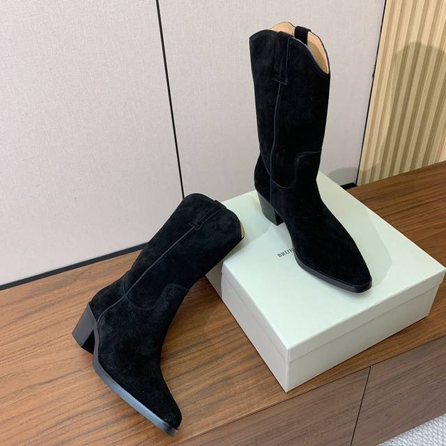 Brunell* Cucinell* 粗跟中靴。鞋面牛反绒,羊皮内里,原版开模五金,橡胶大底。 码数:35-41 35、41定制不退换 批: