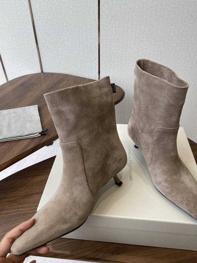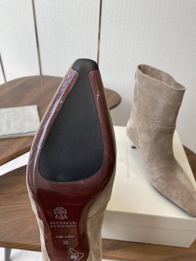 Brunello Cucineli Ss25New Arrival~ 秋冬新款系 尖头 短靴 上脚帅气舒适 秋冬一定要有一双Bc的战靴 Bc家的品牌鞋子设计基本没有啥1Og0标识, 风格主要以米色 灰色 色调为主,非常低调奢华,高级感满满 小众有品位的代词~鞋子 虽然结合了不同材质不同颜色,但是没有任何违和感,一点也不夸张,反而让人在视觉上感觉舒适! Bc家就是有能力把不同的颜色和材质结合,但又不会有明显的季节感,在任何时候拿出来穿都能让你满意 鞋面牛皮 羊皮内里 原版注塑大底 Suze: #35-39