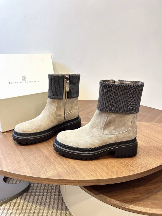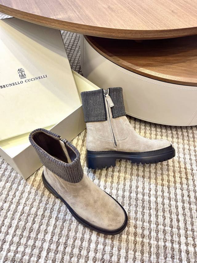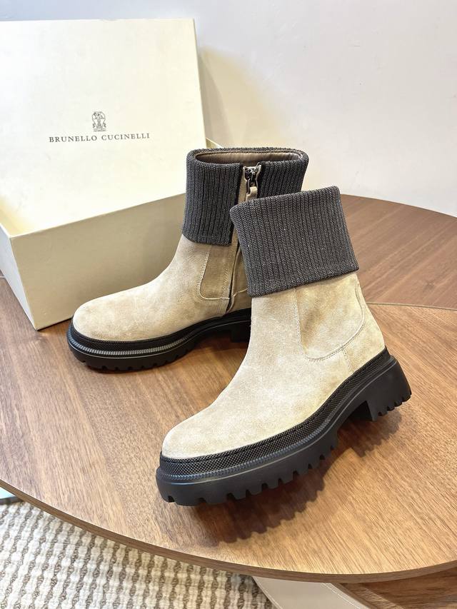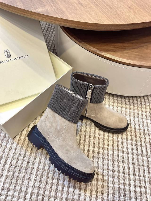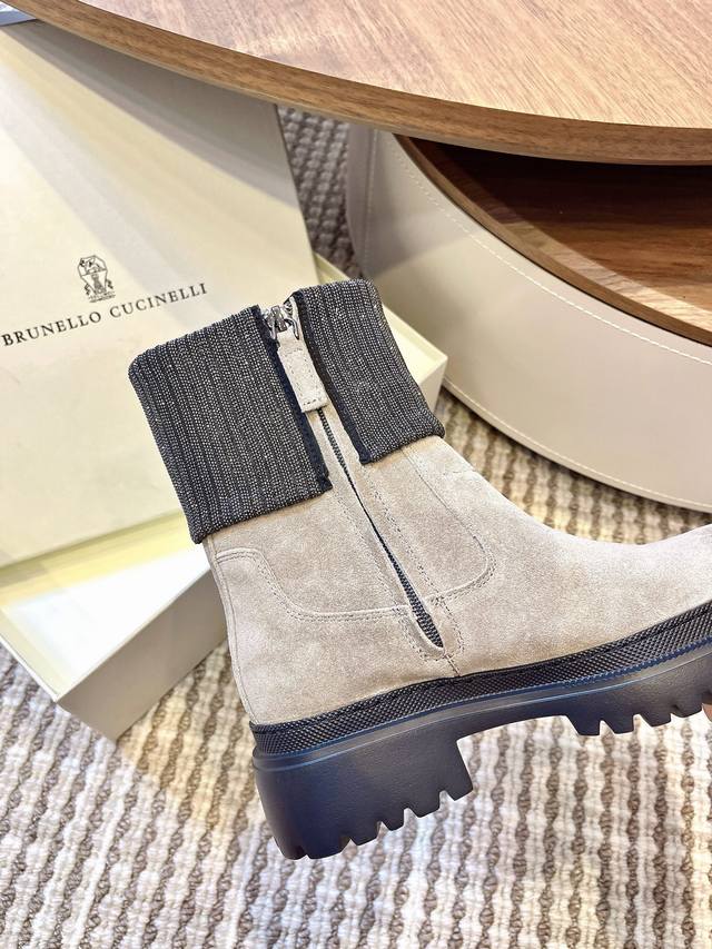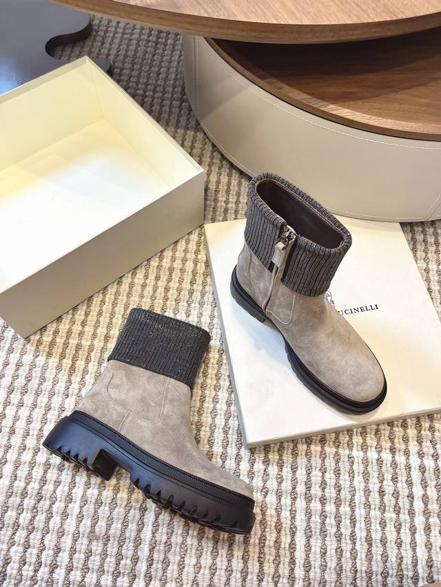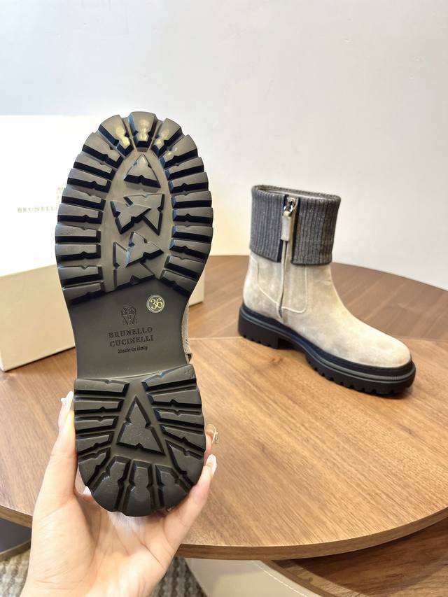 Brunello Cucinell布鲁奈罗库奇内利秋冬袜筒靴 Bc是意大利知名品牌,极简主义风格,优雅复古又高级高级百搭之王,脚感很好很舒服超级百搭 超级耐看! 鞋面麂皮 羊毛 羊绒 真丝针织内里等混搭设计 原版开模大底 Size:35-42 40-42订做不退换