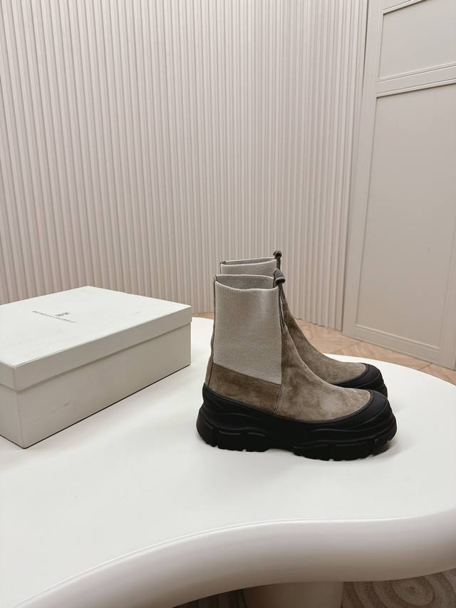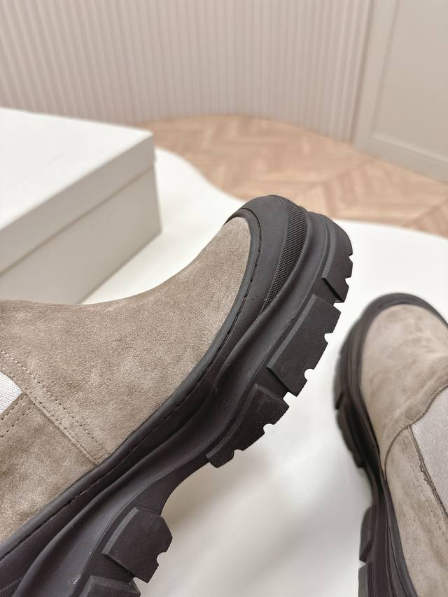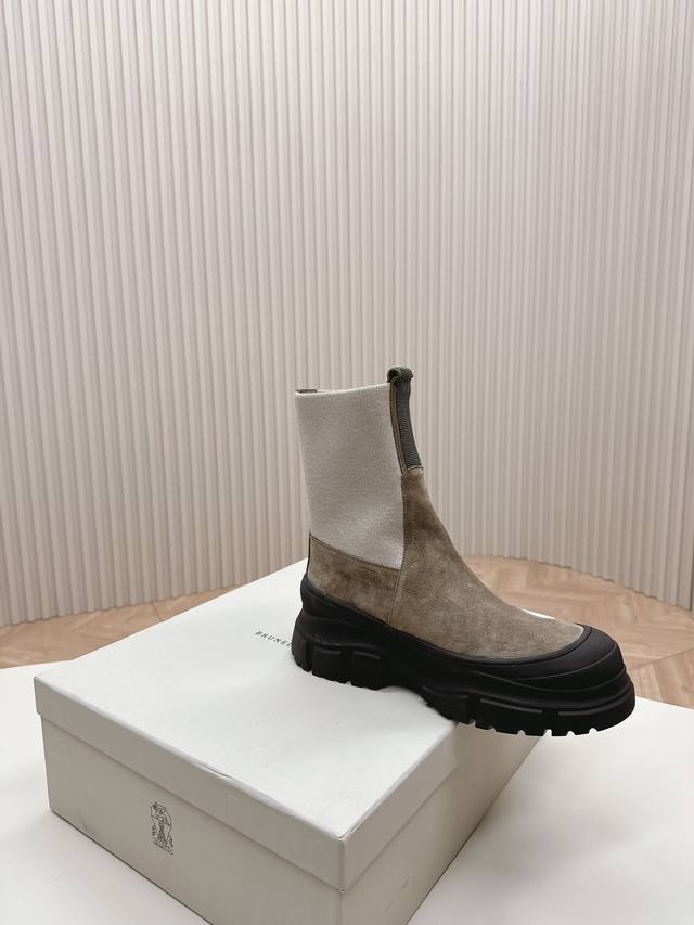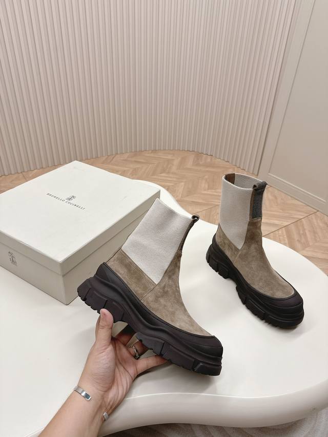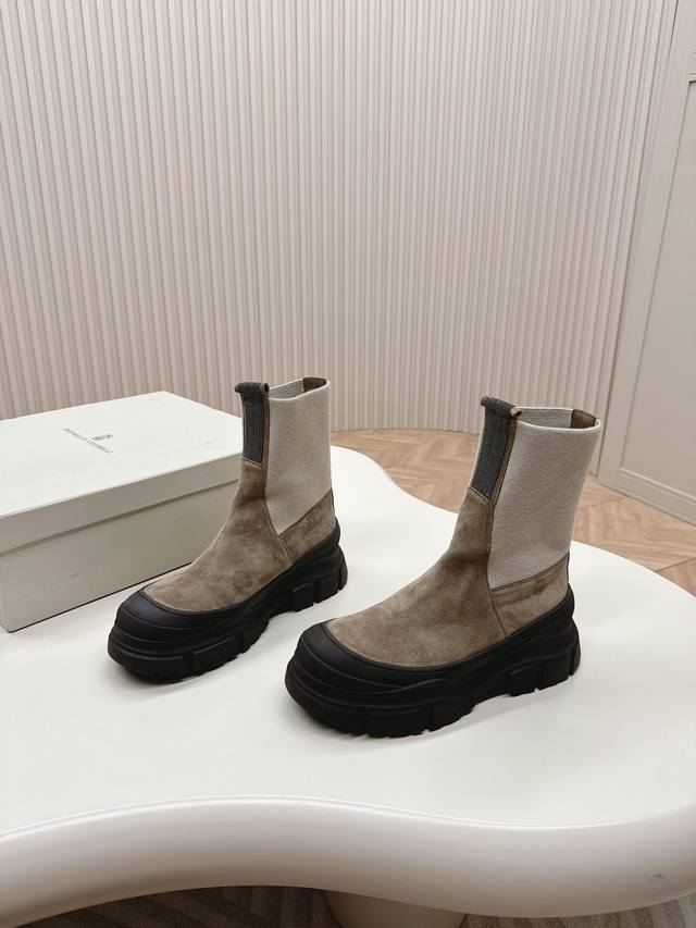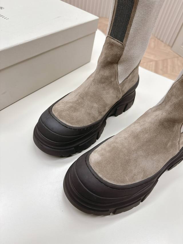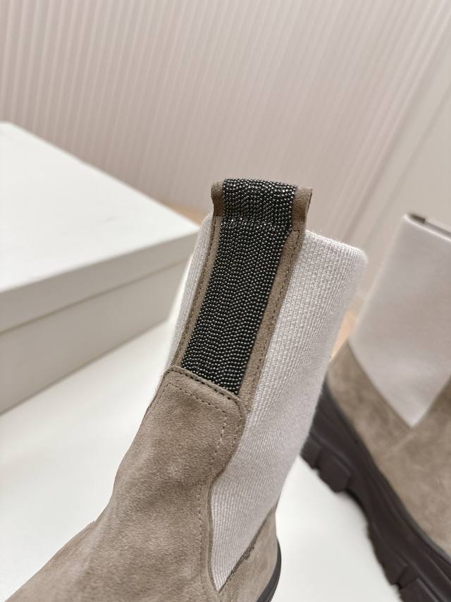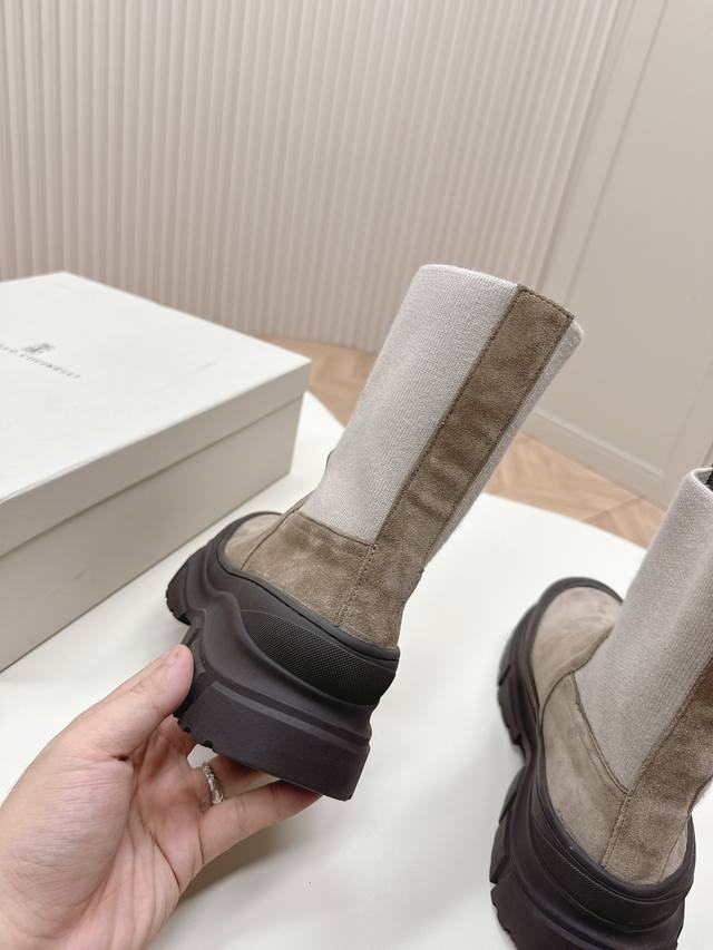 Brunello Cucinelli新款Bc秋冬靴子系列 Bc是意大利知名品牌,极简主义风格,优雅复古又高级!简约又大气,属于非常耐看的款式超级百搭!超级耐看!鞋面麂皮,羊毛 羊绒 真丝针织内里等混搭设计!原版舒适橡胶大底! DDD 码数:35-40 DDD