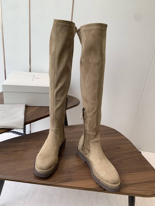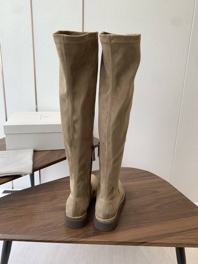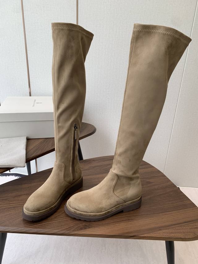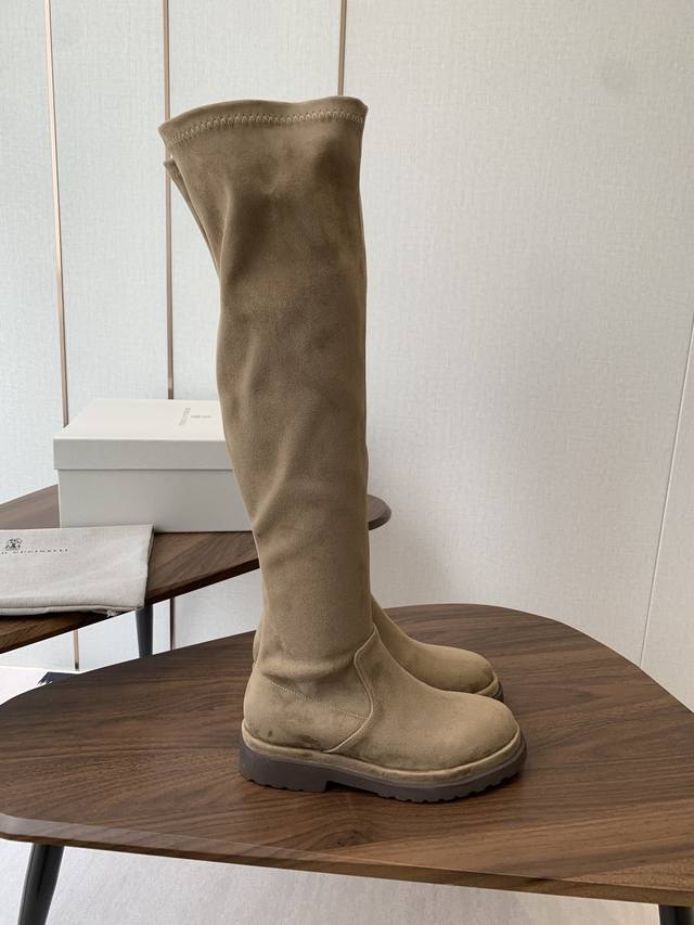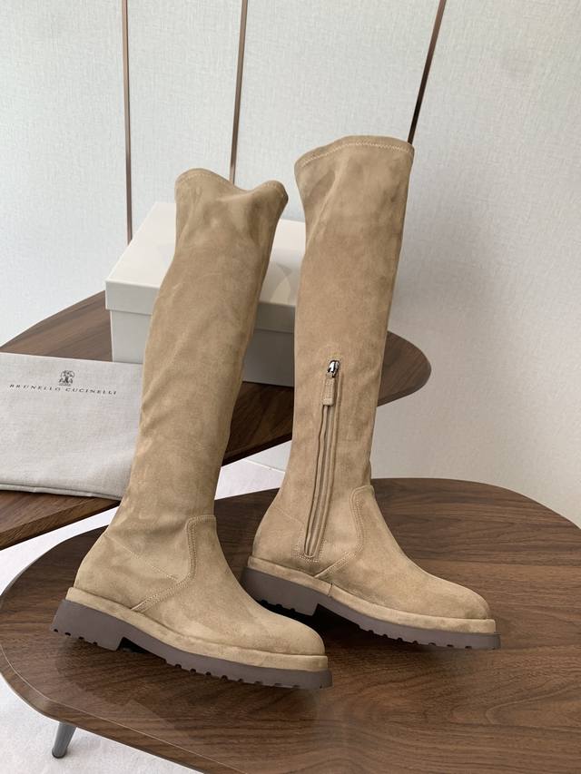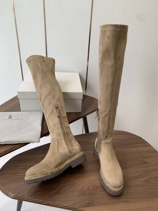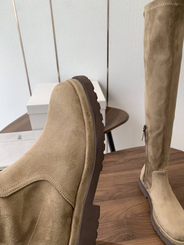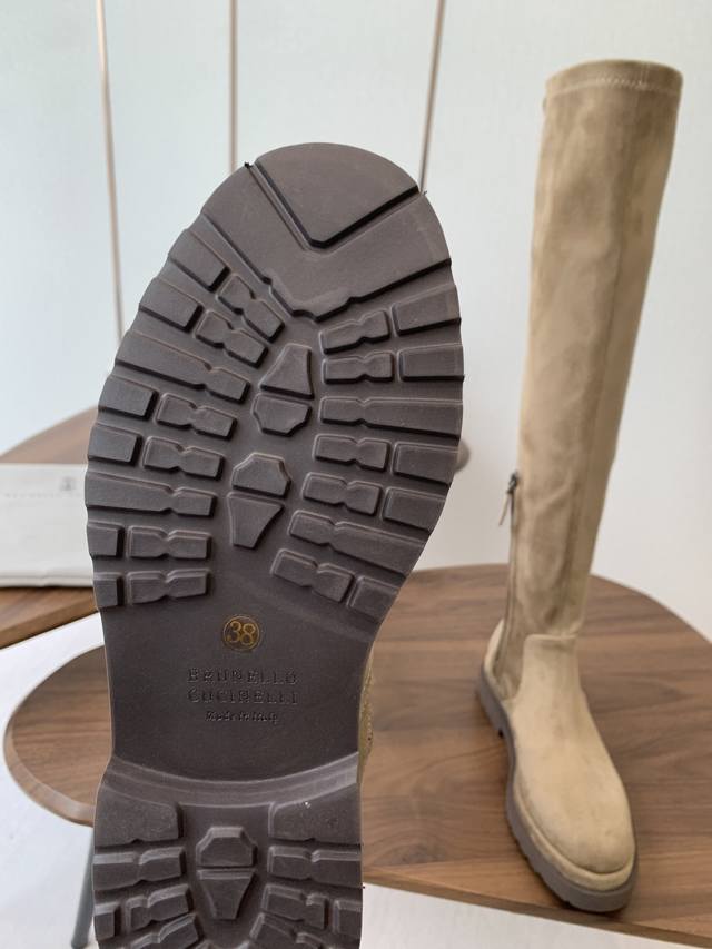 Brunello Cucinelli顶级原单秋冬 Bc牛皮高筒 厚底 弹力长靴 购入Zp对比定制 Brunello Cucinelli是来自意大利的世界顶级奢侈品牌,被誉为低调奢华的“山羊绒之王”和“服装界真正的奢侈品” 舒适、精巧的设计营造出这款小牛皮长筒靴的风格。鞋头一道闪亮镶珠嵌饰,以意想不到的亮光为靴子融入柔美风韵。侧面的混合羊毛针织物、高靴筒、微孔材料鞋底和鞋外底设计,让靴子上脚贴合舒适,行走灵活自如 我家真正原厂开发出货,真正出厂价Pp一分钱一分货,全部真材实料,绝不偷工减料 鞋楦、皮料面料、