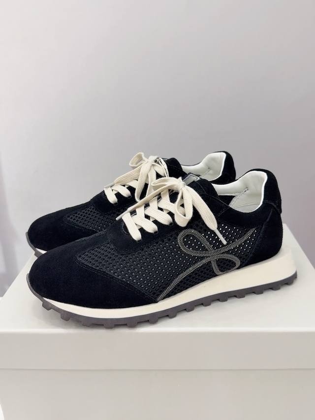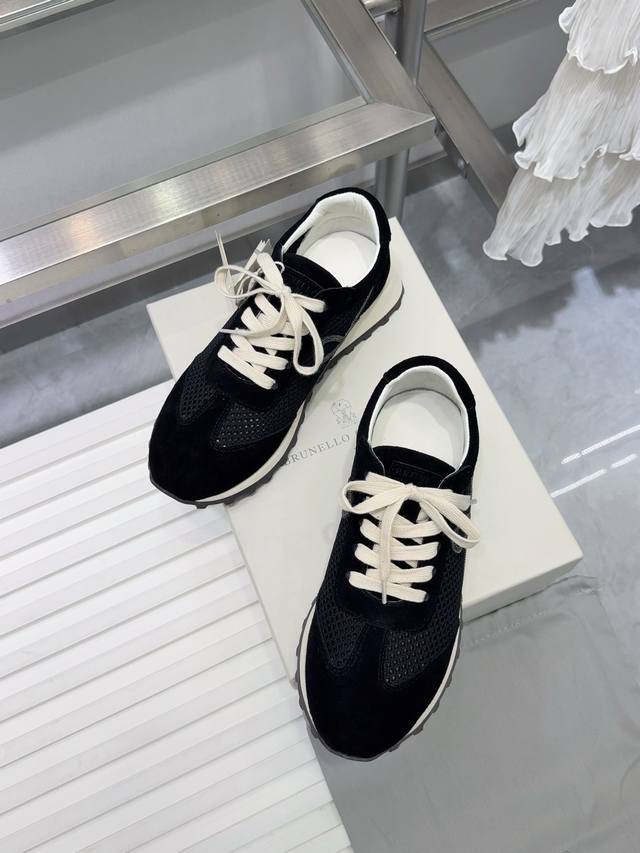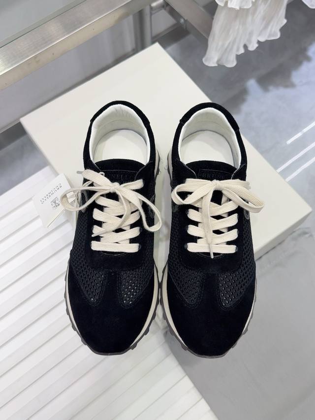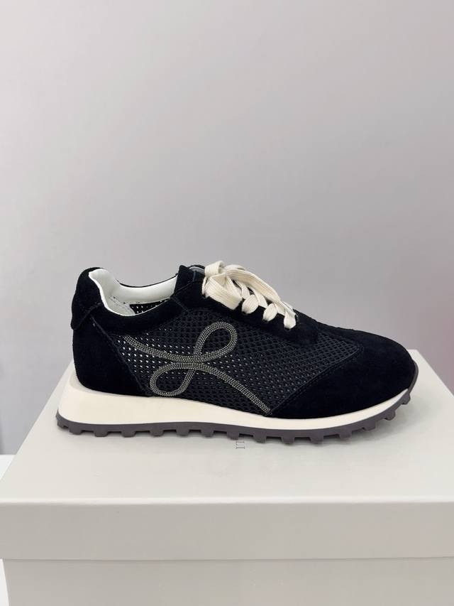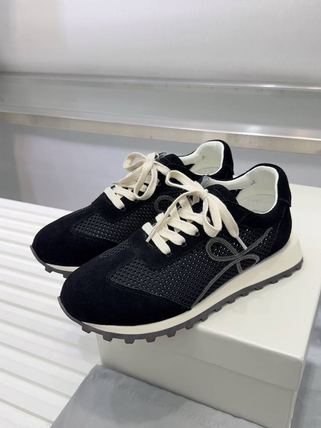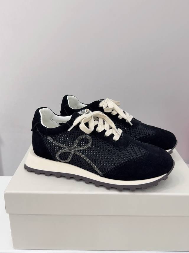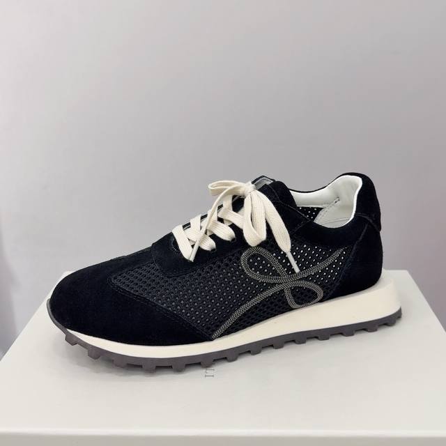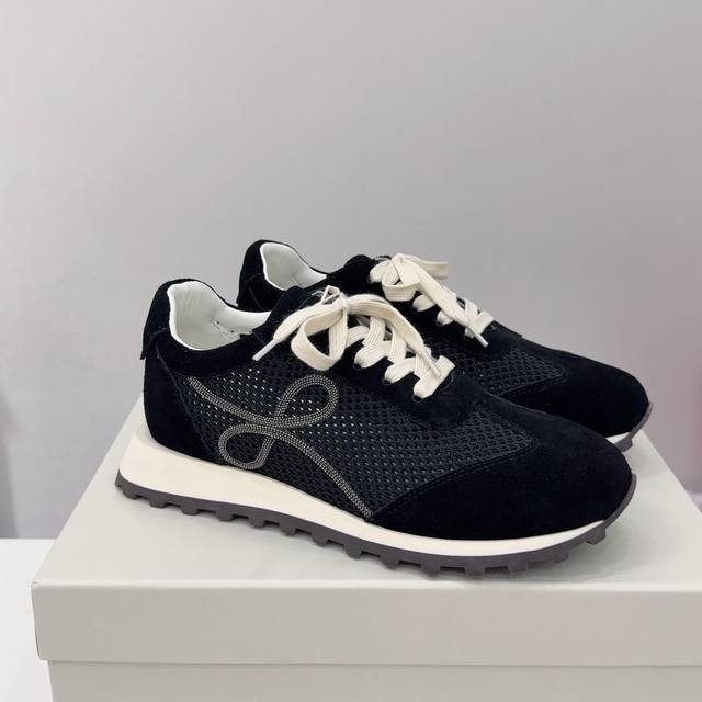 Brunello Cucinelli 女士镶珠装饰飞织休闲运动鞋Bc新款秋冬4色新品女士条纹麂皮单鞋:羊皮垫.装饰镶珠运动鞋 款号: 鞋面:一比一复刻高丝光、牛