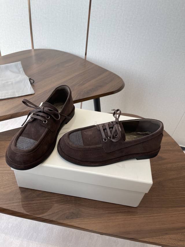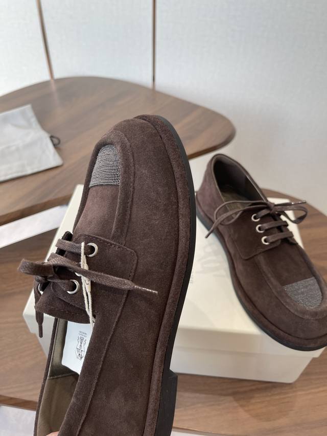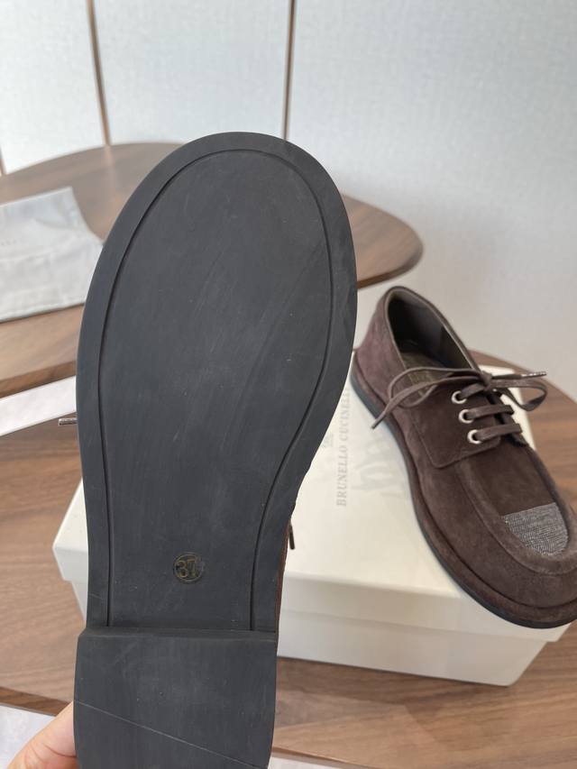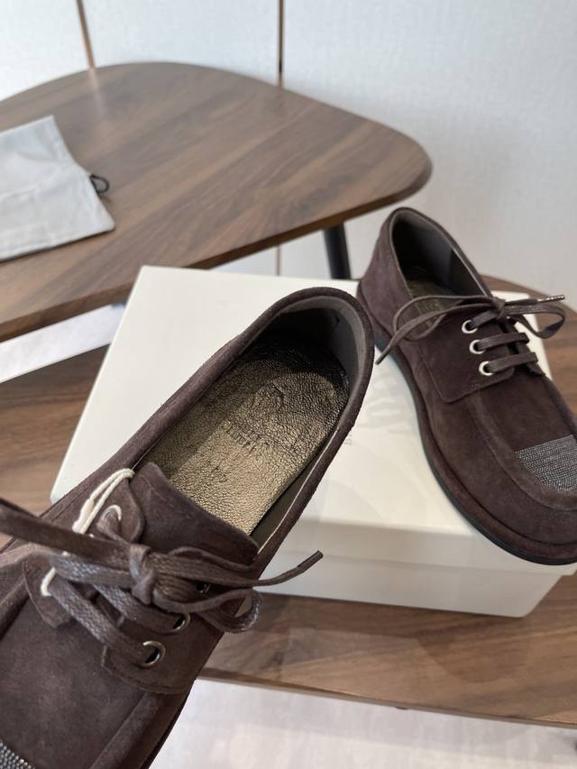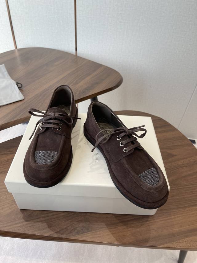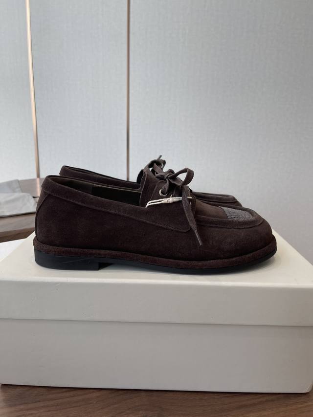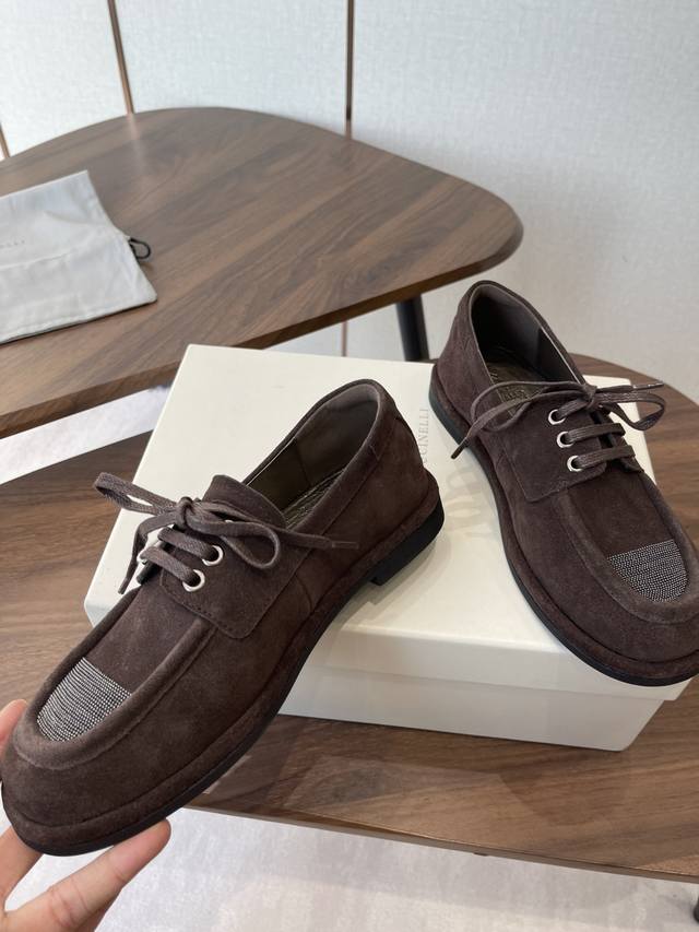 Brunello Cucinelli 25Ss 秋冬新款复古乐福鞋 DDD Bc是意大利知名品牌,极简主义风格,纯手工串联珠链配饰!复古又高级!简约又大气,属于非常耐看的款式! DDD 高级百搭之王,完全没有抵抗力!脚感很好很舒服!看起来平平无奇,穿起来又瘦又帅! DDD 不局限任何场合,日常工作、时尚又干练!不管搭配 裙装、裤装、风衣大衣、都非常百搭!超级耐看!一年四季春夏秋冬皆适宜。 DDD 面料:原版一比一定制小牛皮面料 高丝光牛反毛 DDD 内里:原版意大利定制金属羊皮内里,金属羊皮垫脚。 DDD
