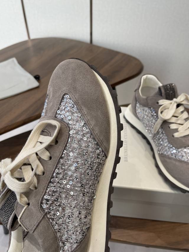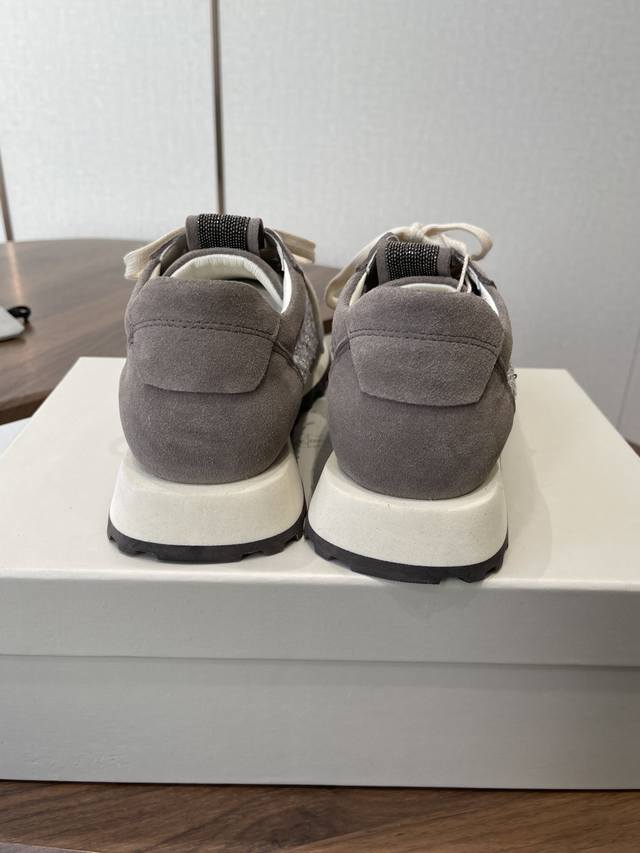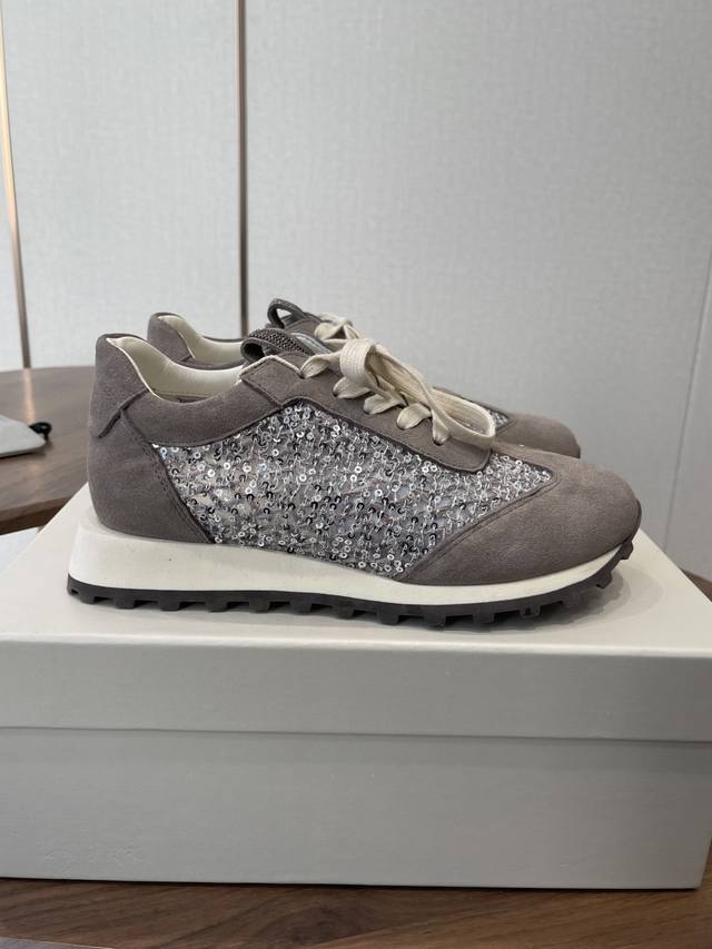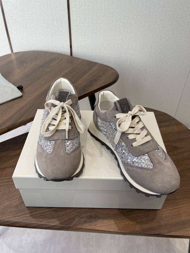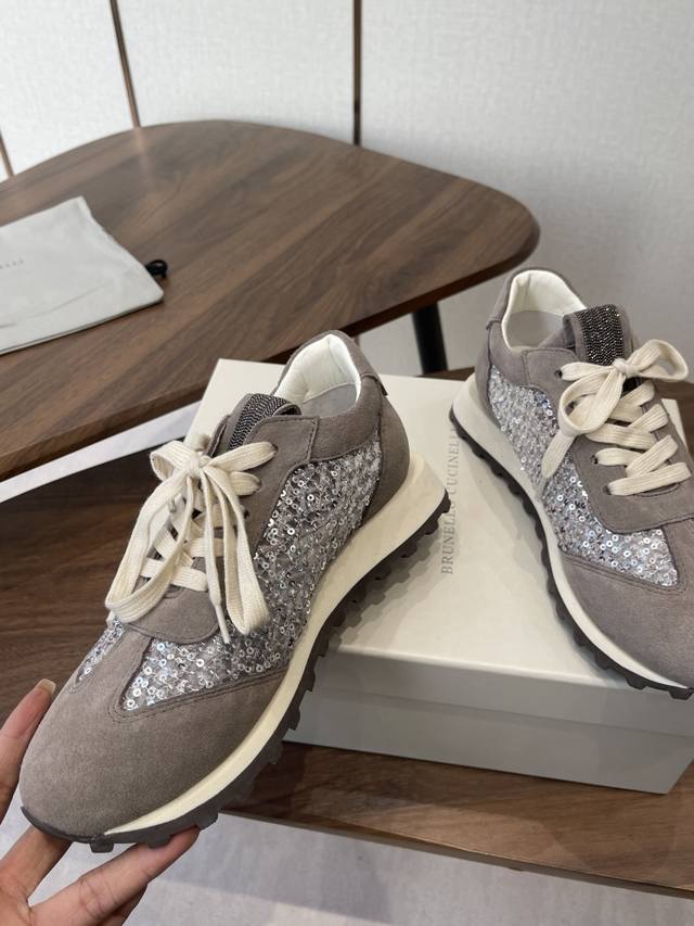 Brunello Cucinelli 26Ss女士镶珠装饰休闲运动鞋Bc新款秋冬新品女士条纹麂皮单鞋:羊皮垫.装饰镶珠运动鞋 款号: DDD 鞋面:一比一复刻高