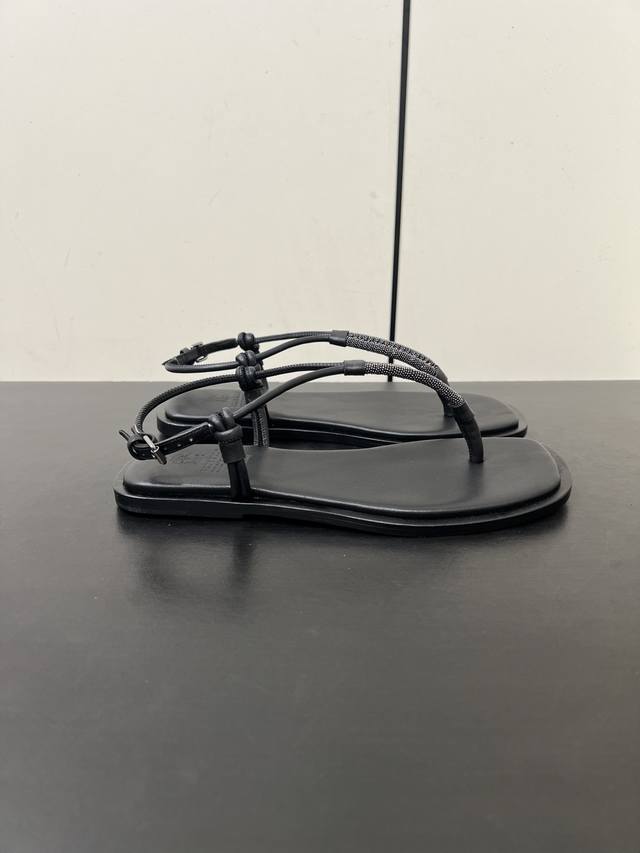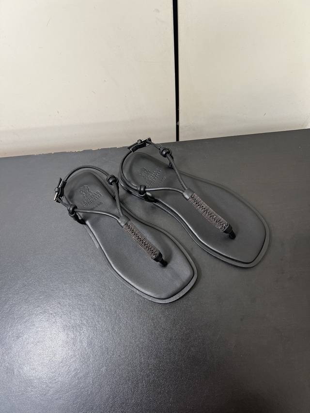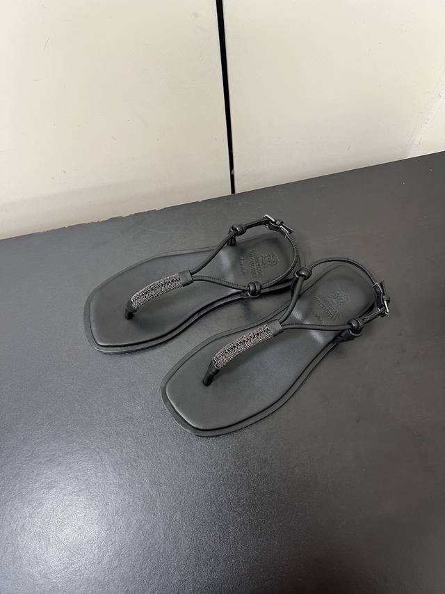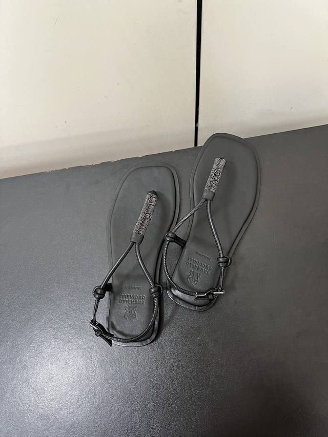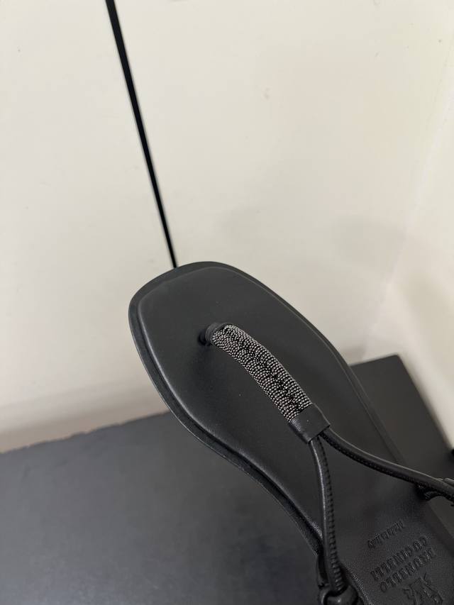 Brunello Cucinelli Bc新款夹脚凉鞋拖鞋Bc很有品味!度假风也是Ok的,搭配牛仔裤穿也好看!高级百搭之王,完全没有抵抗力!脚感很好很舒服!看起来平平无奇,穿起来又瘦又帅!不局限任何场合,日常工作、时尚又干练!不管搭配 裙装、裤装、都非常百搭!超级耐看!鞋面采用进口柔软羊猄,内里原版意大利定制羊皮内里,羊皮垫脚。 原版开模真皮大底,舒适度极高轻盈配饰,原版开模定制珠链奢侈程度和服装无区别。Size:35-42 35 40 41 42订做不退换
