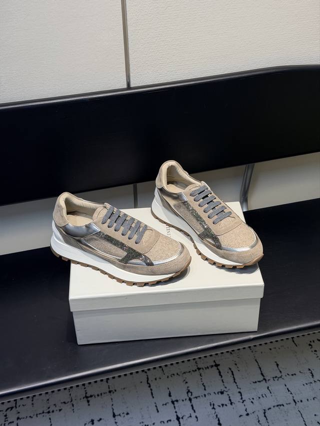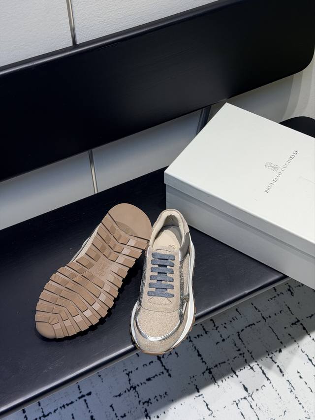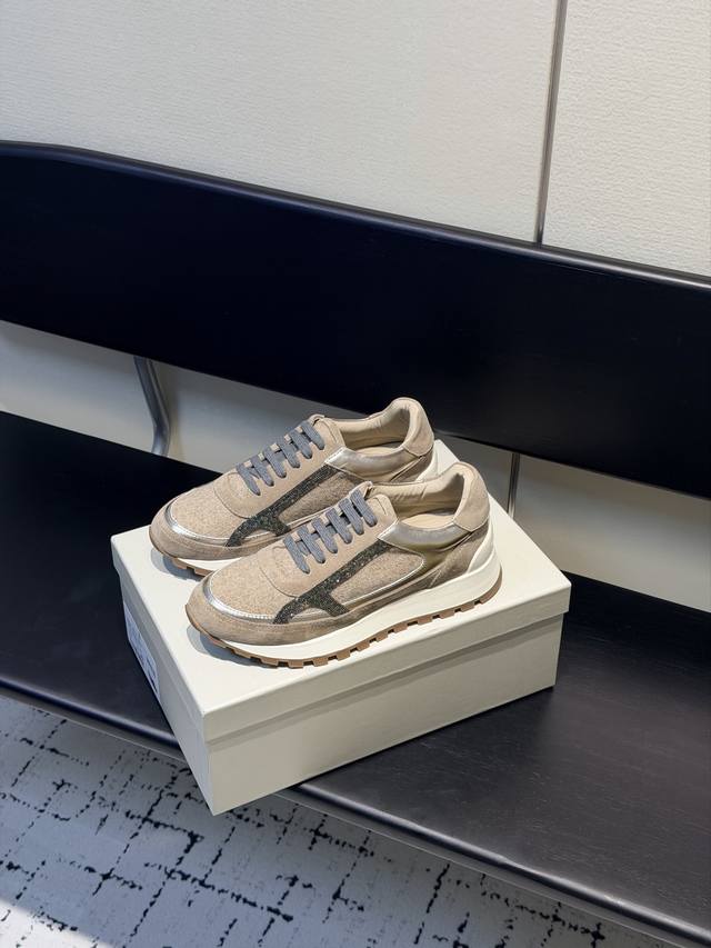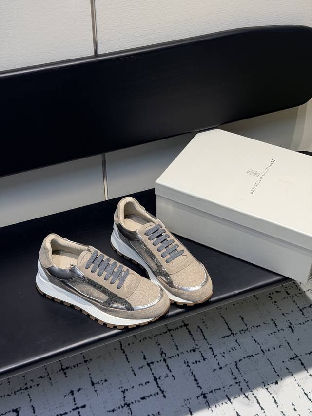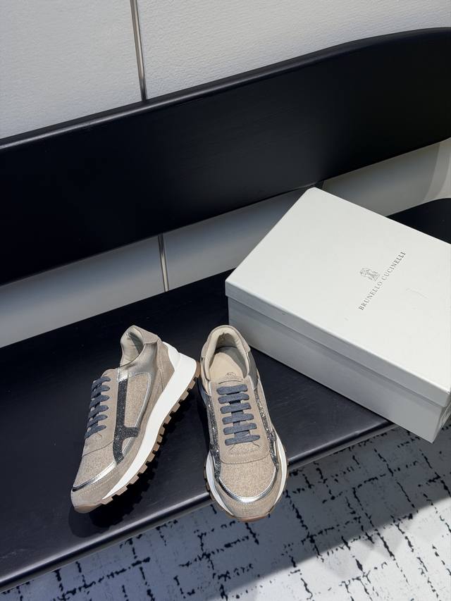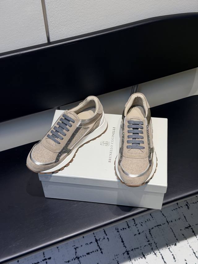 Brunello Cucinelli Bc新款秋冬新色新品女士条纹麂皮单鞋:羊皮垫.装饰镶珠运动鞋 DDD 鞋面:一比一复刻高丝光、牛皮拼接特殊材料 DDD 搭