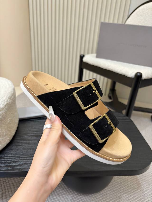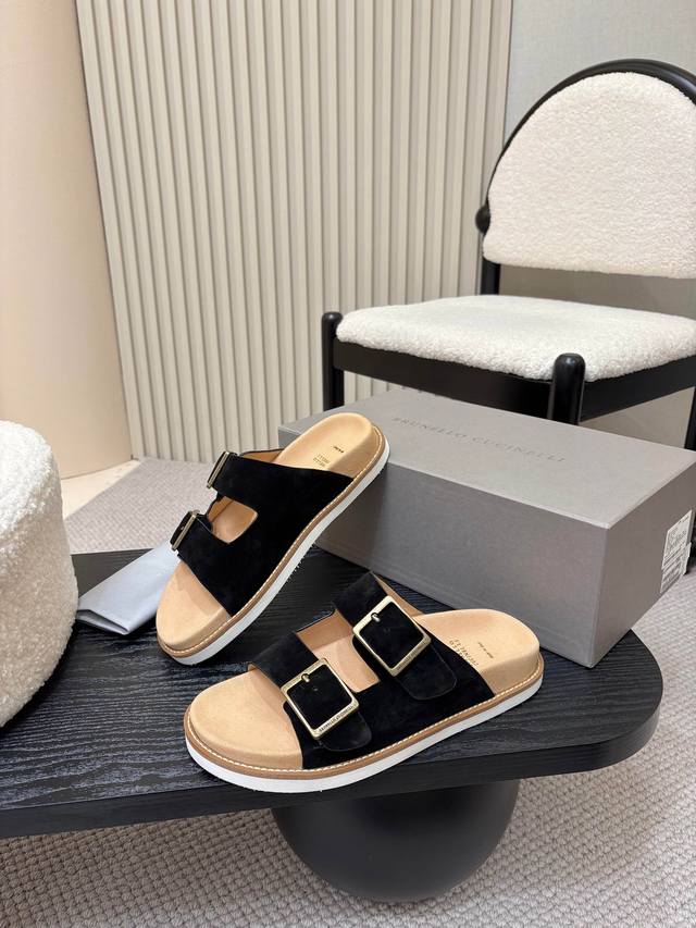 Brunello Cucinelli,2025Ss新款拖鞋出货古铜 色Logo双排扣凉拖,复古简约又不失时尚感,搭在任何穿搭上,都能轻松提升整体造型的精致度,每一步都走出随性自在 ,原版抽屉式包装,精致而大气I!