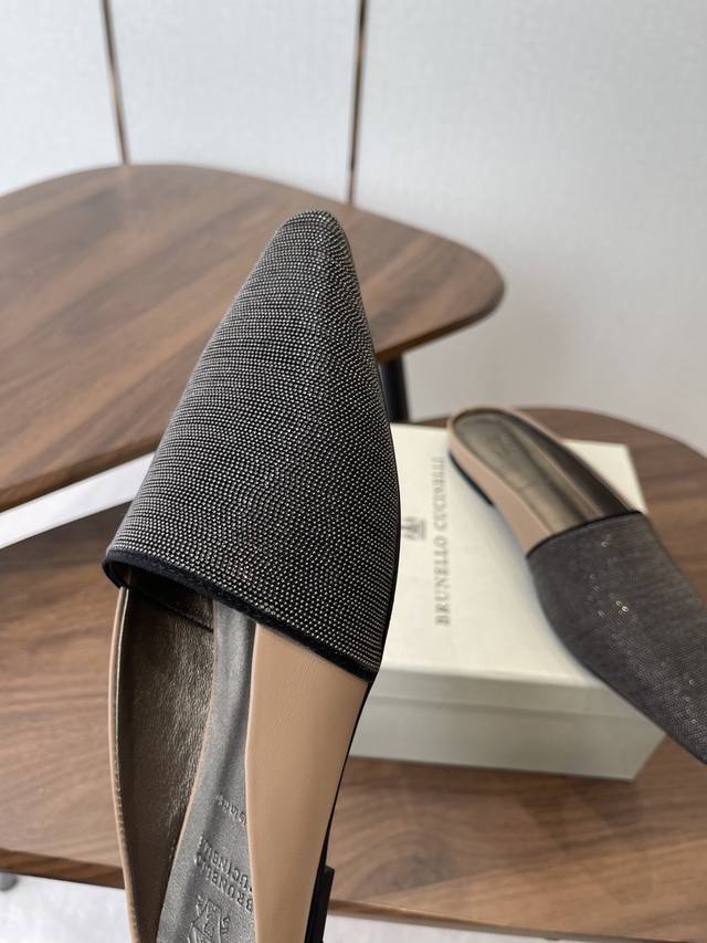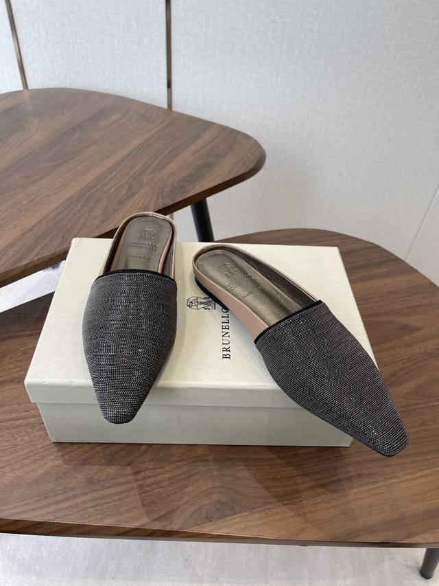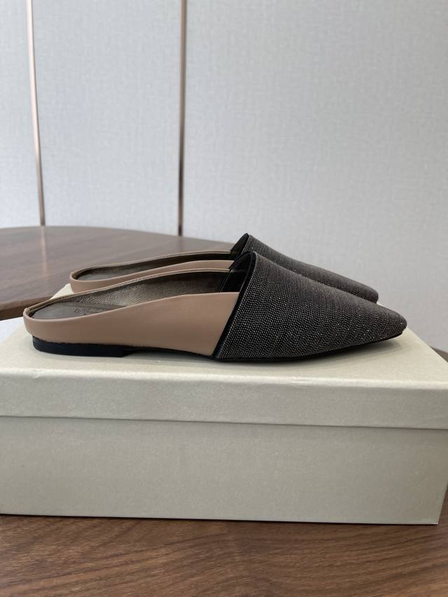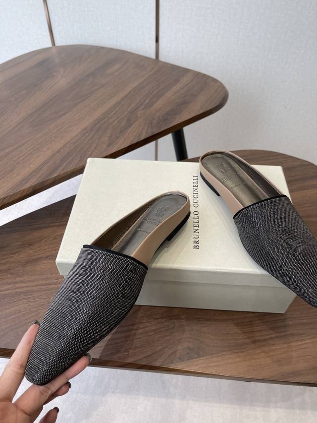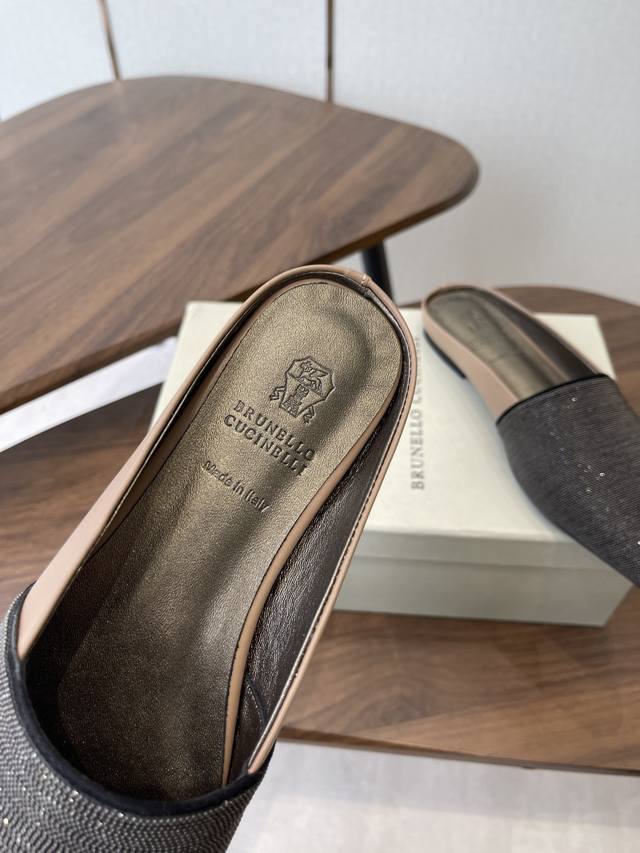 Brunellocucinellibc 26Ss 春夏平底方头拖鞋 DDD 方头鞋一贯是很有女人味的 优雅 精致不急不缓 是有一种气质的这是很多乐福鞋比拟不了的 DDD 但是如果尖头高跟鞋穿久了累 那么一双好穿好看的方头平底鞋就是刚需了 进口牛皮 皮质细腻 脚感很重要 DDD 这个不需要多说 女人太懂一双好鞋的重要性了 避免各种摩擦磨脚 细腻的质感就是必须要有的 DDD 材质:进口牛皮 链条鞋面 垫脚:羊皮 大底:意大利进口真皮底 DDD Size:#35-41 40 41订做不退换 DDD