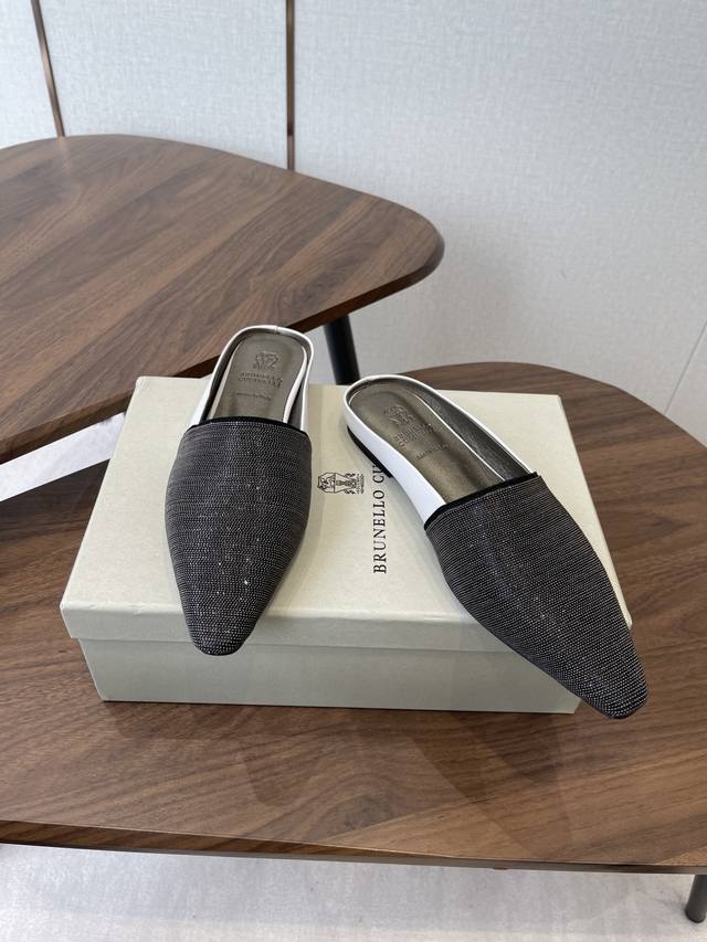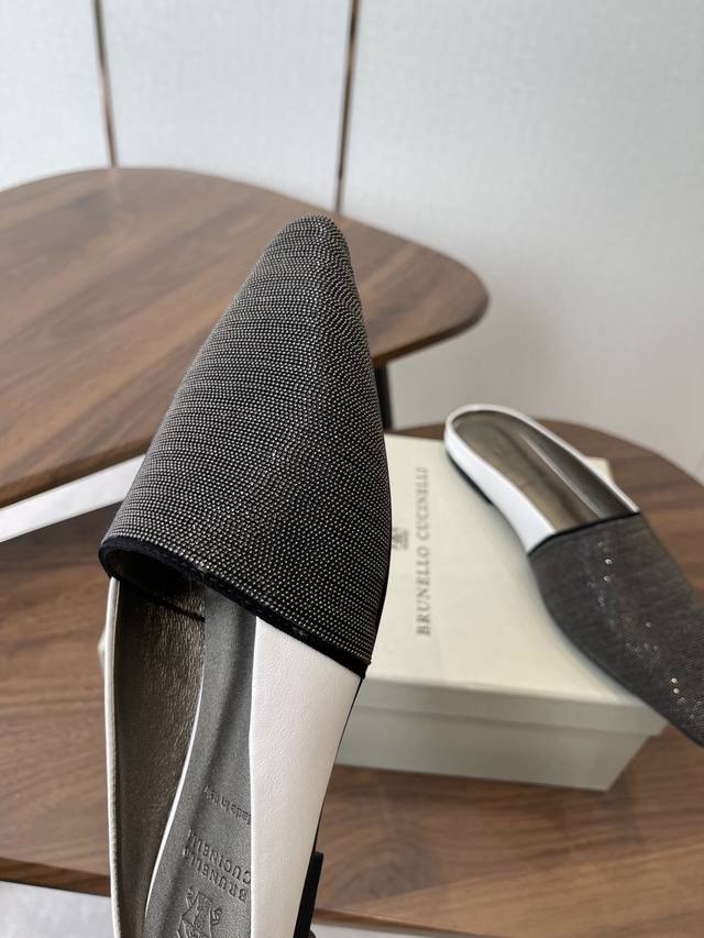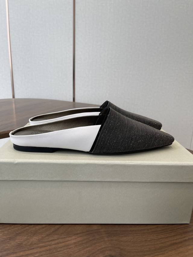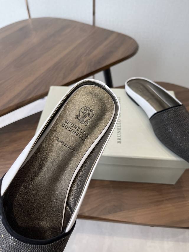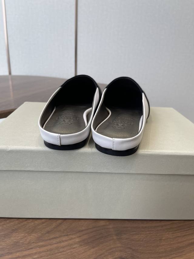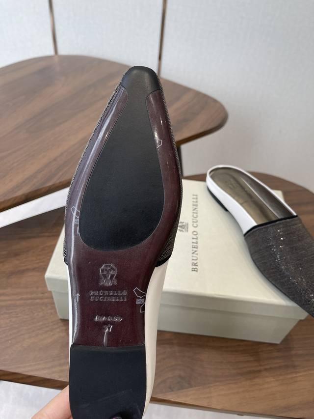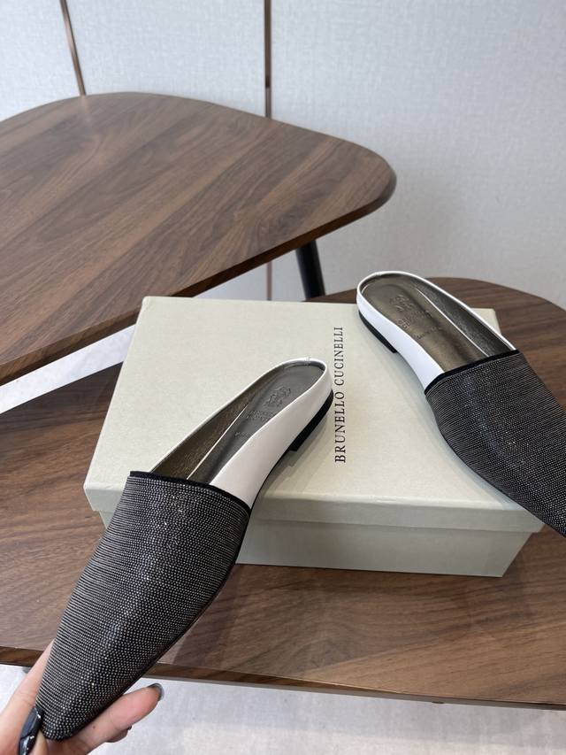 Brunellocucinellibc 26Ss 春夏平底方头拖鞋 DDD 方头鞋一贯是很有女人味的 优雅 精致不急不缓 是有一种气质的这是很多乐福鞋比拟不了的 DDD 但是如果尖头高跟鞋穿久了累 那么一双好穿好看的方头平底鞋就是刚需了 进口牛皮 皮质细腻 脚感很重要 DDD 这个不需要多说 女人太懂一双好鞋的重要性了 避免各种摩擦磨脚 细腻的质感就是必须要有的 DDD 材质:进口牛皮 链条鞋面 垫脚:羊皮 大底:意大利进口真皮底 DDD Size:#35-41 40 41订做不退换 DDD