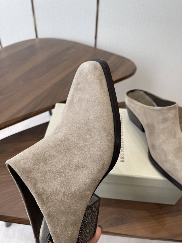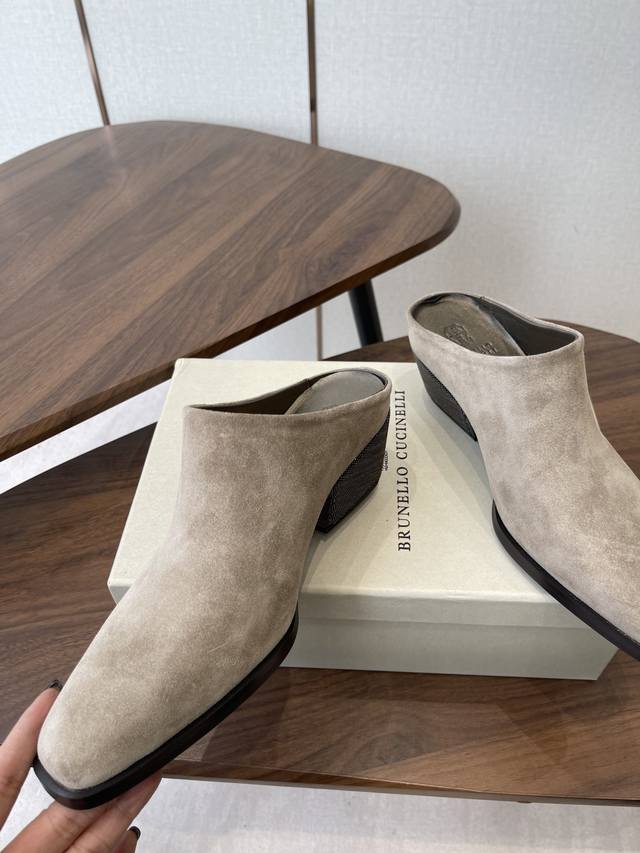 Brunellocucinellibc 26Ss 春夏穆勒鞋拖鞋 DDD 方头鞋一贯是很有女人味的 优雅 精致不急不缓 是有一种气质的这是很多乐福鞋比拟不了的 DDD 但是如果尖头高跟鞋穿久了累 那么一双好穿好看的方头平底鞋就是刚需了 进口牛皮 皮质细腻 脚感很重要 DDD 这个不需要多说 女人太懂一双好鞋的重要性了 避免各种摩擦磨脚 细腻的质感就是必须要有的 DDD 材质:进口牛皮 麂皮 垫脚:羊皮 大底:意大利进口真皮底 DDD Size:#35-41 40 41订做不退换 DDD