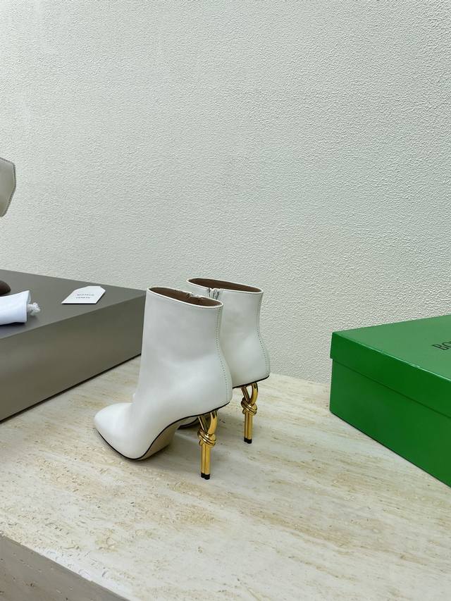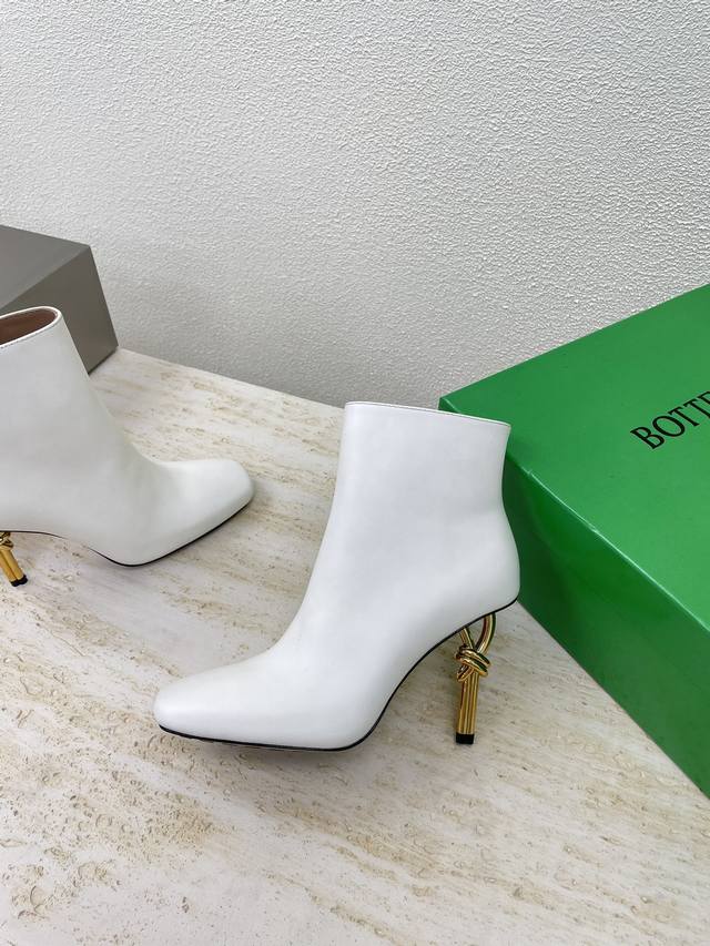 Bv Knot系列金属跟短靴 盐白头层小牛皮 这款方头短靴简直Bv最新天花板啦 3彩色百搭 金属麻花跟 为了稳固耐穿特意采用特殊工艺 消除心理阴影 耐穿舒适 手
