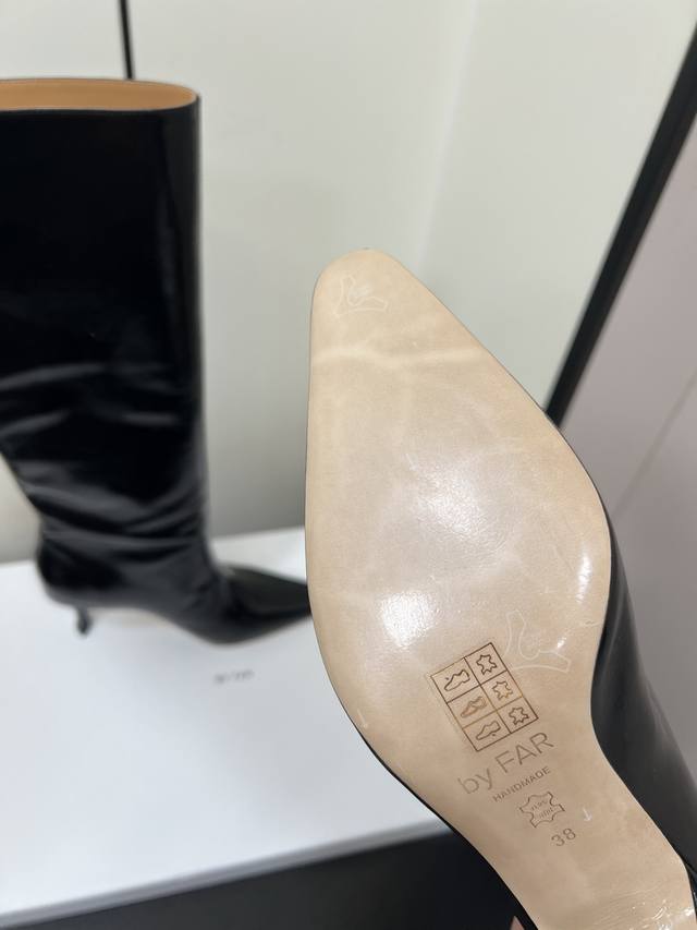 Byfar秋冬尖头高跟长靴 近年非常火爆也符合近年流行大势 设计简单细节巧妙 带点小文艺又有些小性感 一切那么恰到好处! 原版开发,鞋型颜色绝对正确! 鞋面:定制进口油蜡皮 鞋底:意大利真皮大底 跟高:7.5Cm 码数:35-39 40可定做 全套包装