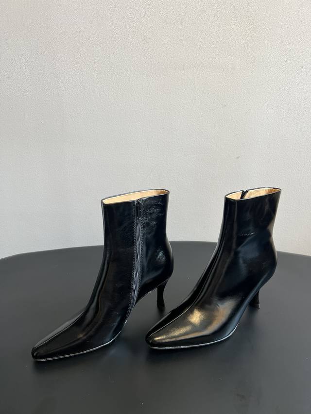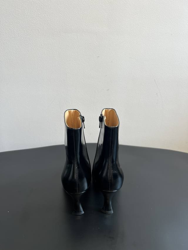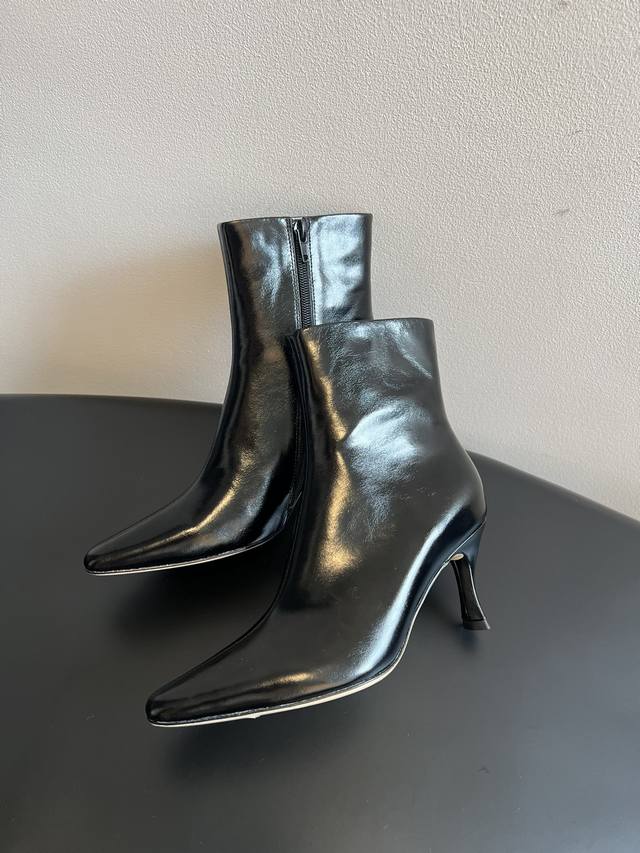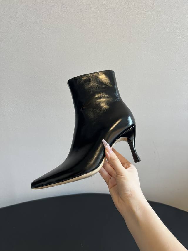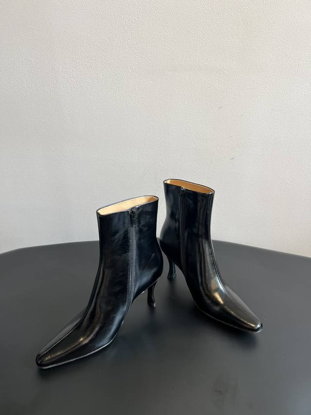 Byfar25Ss 秋冬上新 气质款 全皮版小猫跟 新款短靴 小尖头 更加时髦 拉长腿型 可以看到我们靴子侧面是按照人体腿型设计出来的弧度 上脚非常秀气好看 Byfar这个品牌就不用过多描述啦,最近两年炙手可热的小众品牌。今天给集美们安利鞋款小尖头细跟短靴,依旧是极简主义设计风格,不挑人穿,经典不过时又非常百搭的一款靴子,上班逛街都可搭可穿,裙装,紧身裤,套装都很可,特别日常。跟高:7Cm鞋面:牛皮内里:羊皮大底:意大利真皮Size:#35-39 40定制不退换