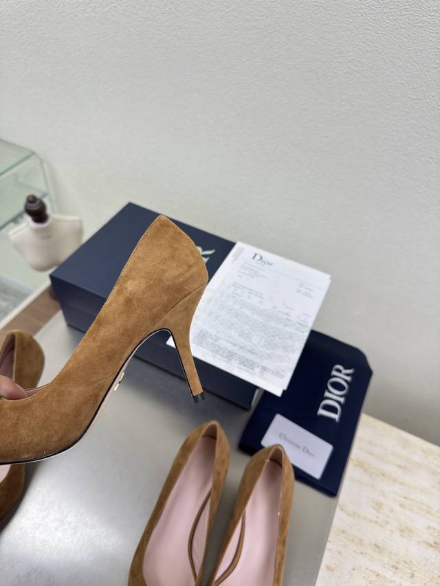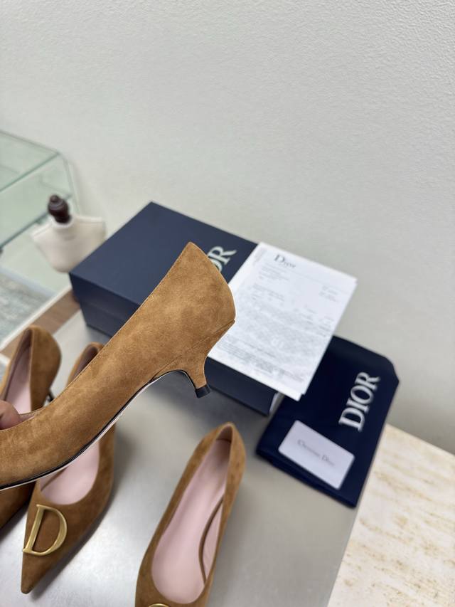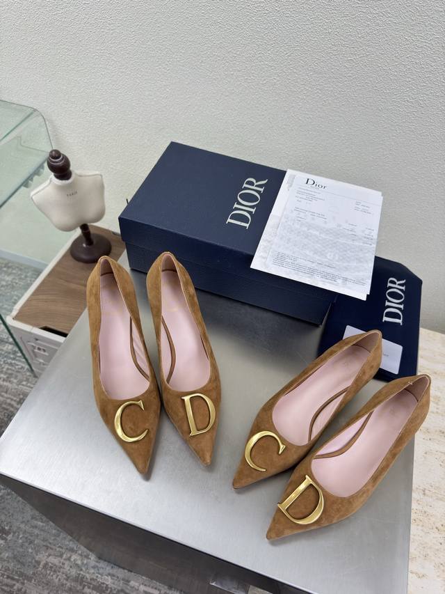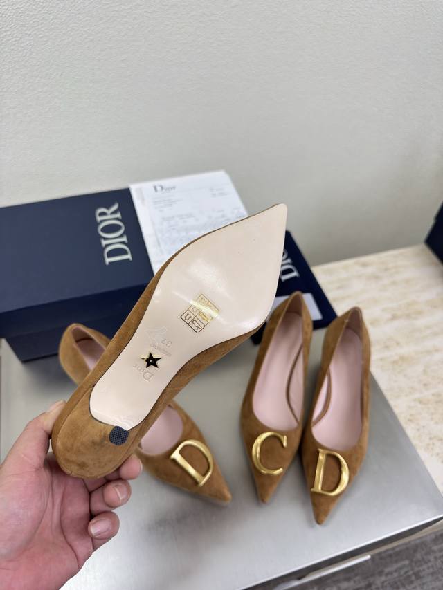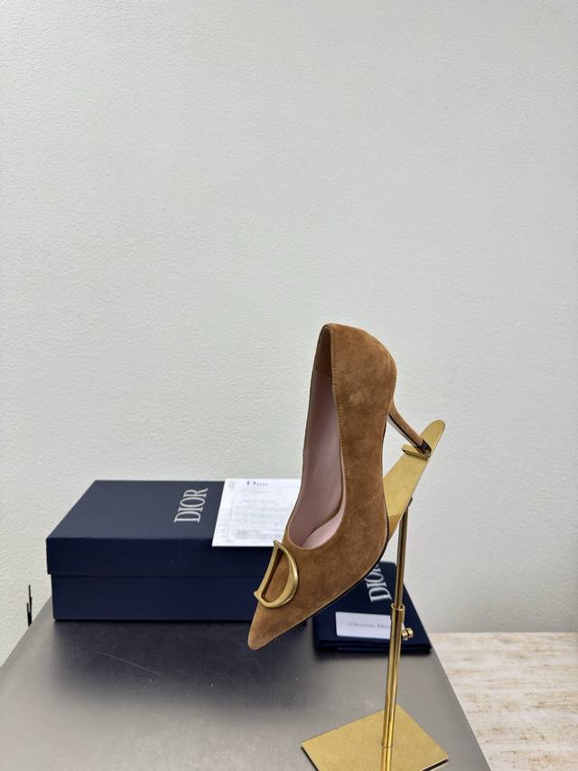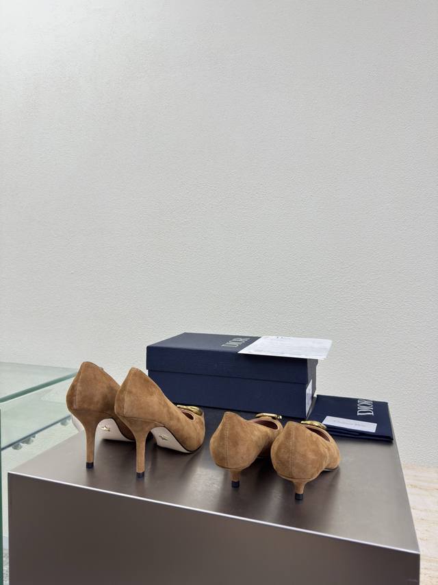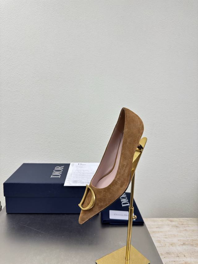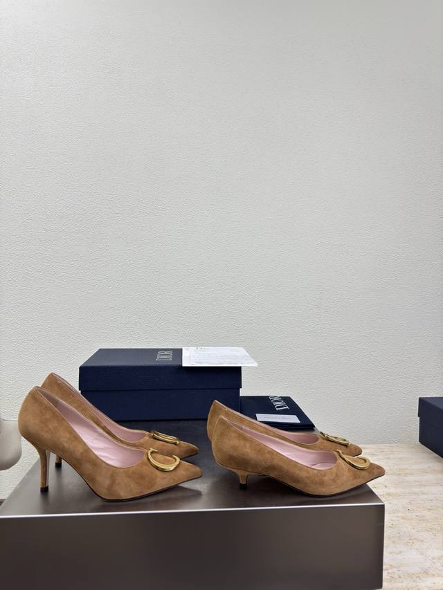 C&D 金属Logo 单鞋 高跟 9 Cm 中跟 5.5Cm 棕色羊反绒麂皮 材质 品牌Logo织带 系列单鞋 高品 品牌 Logo质感满满 鞋型升级到极致脚感