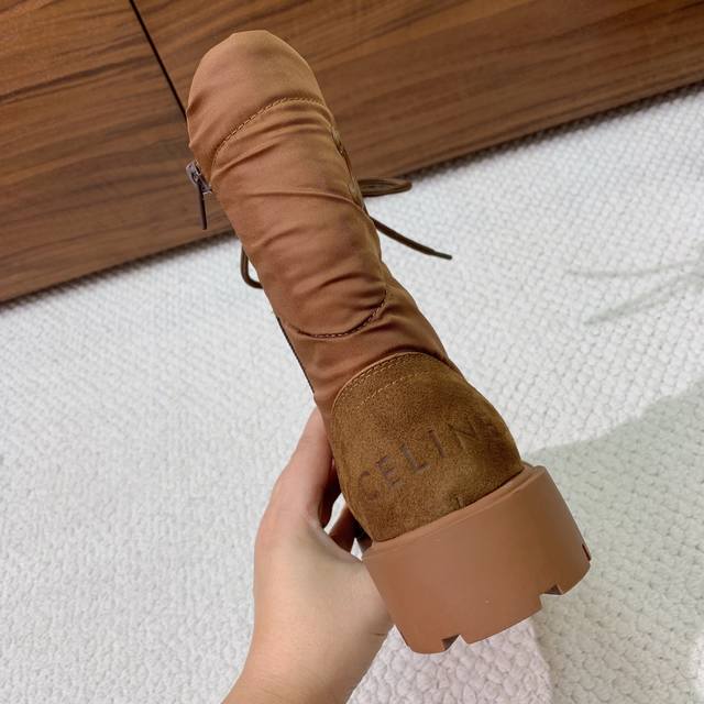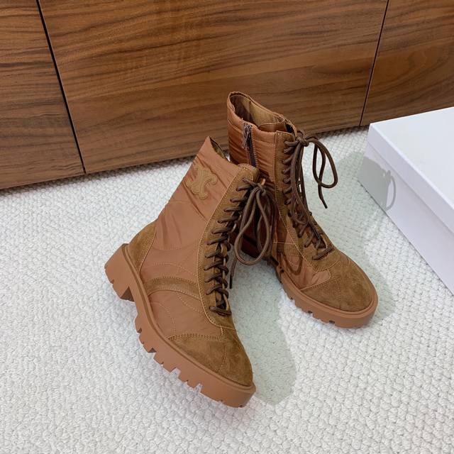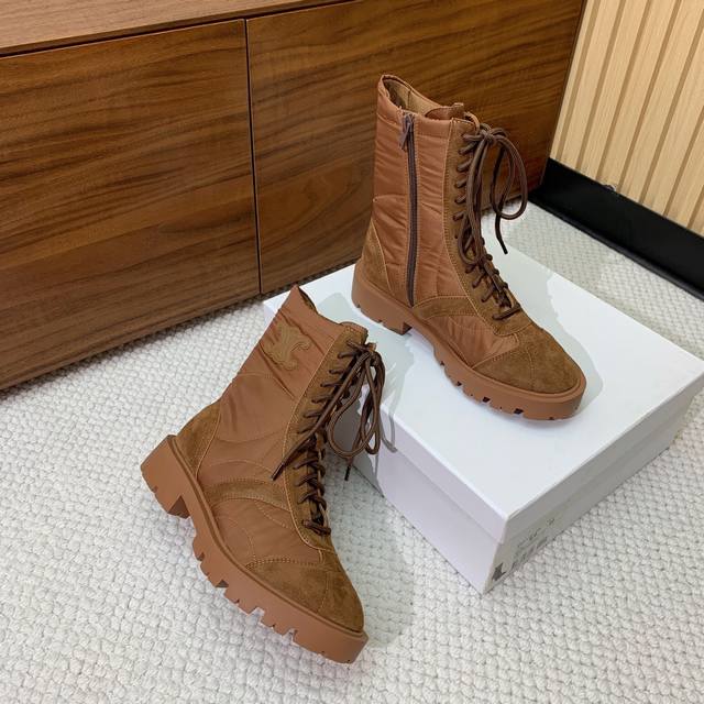Celi*E秋冬短靴。凯旋门装饰中筒靴型,侧面拉链鞋带可调节。鞋面牛京定制网布。原版开模大底 码数:35-40 40定制不退换 批: