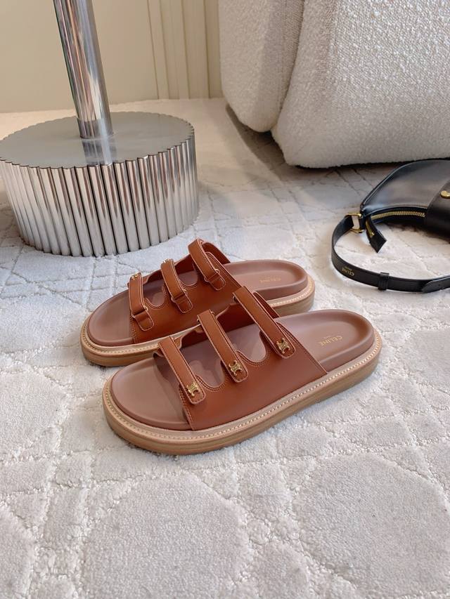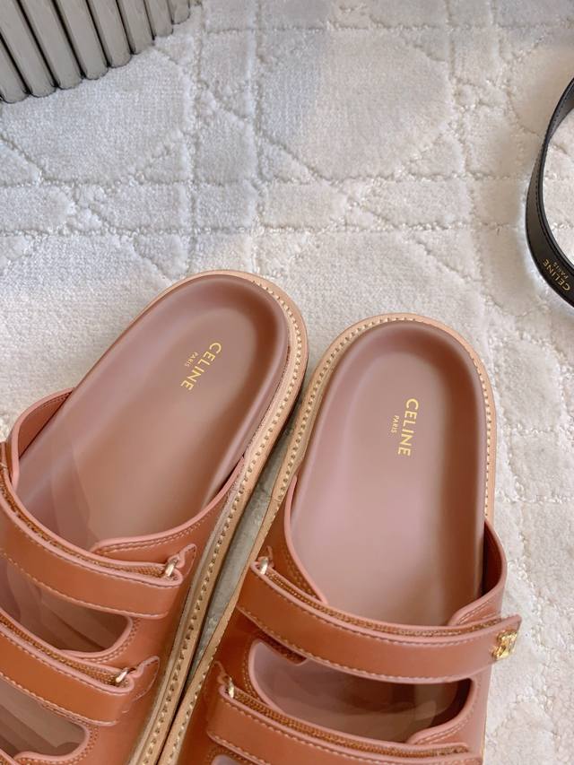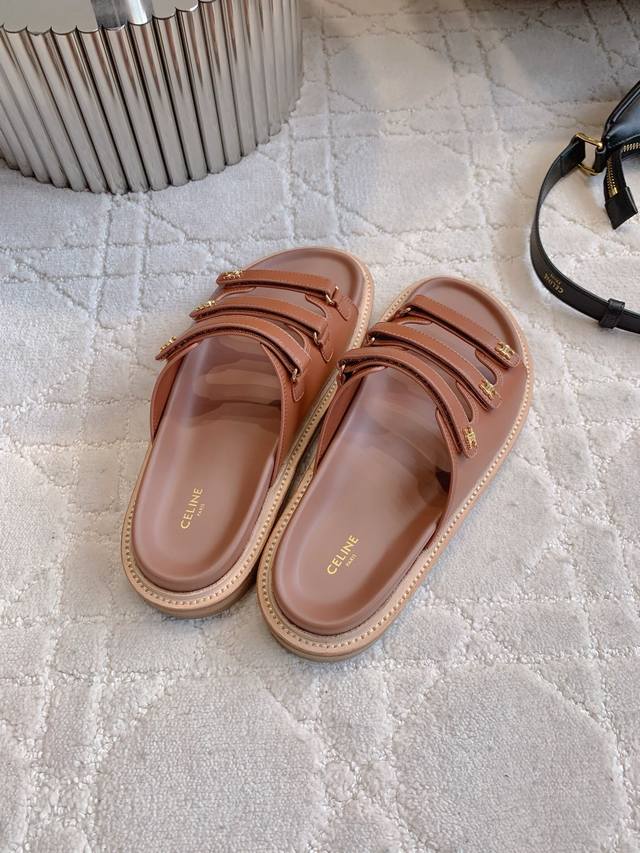 Celin*新款厚底拖鞋 经典Logo搭扣装饰简约耐看 Zp购入1:1打造