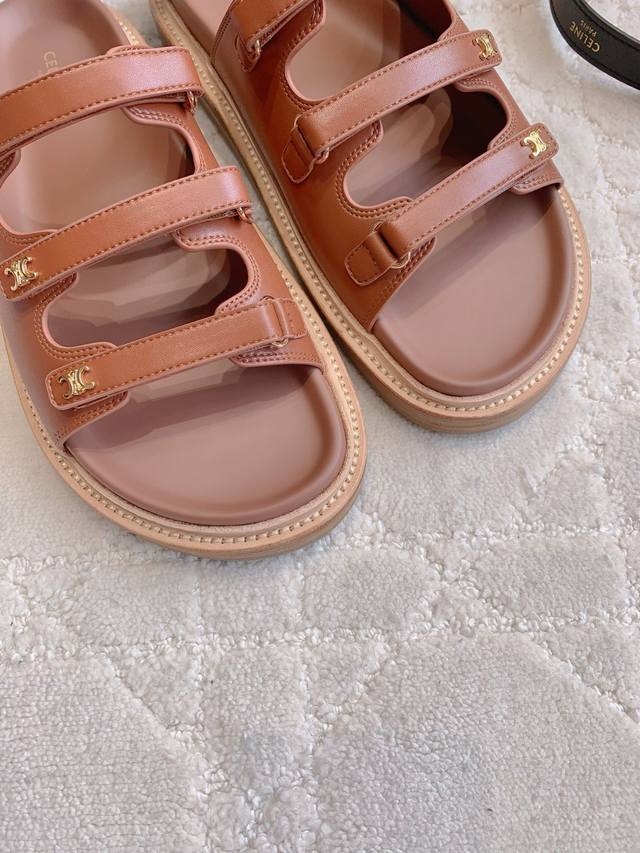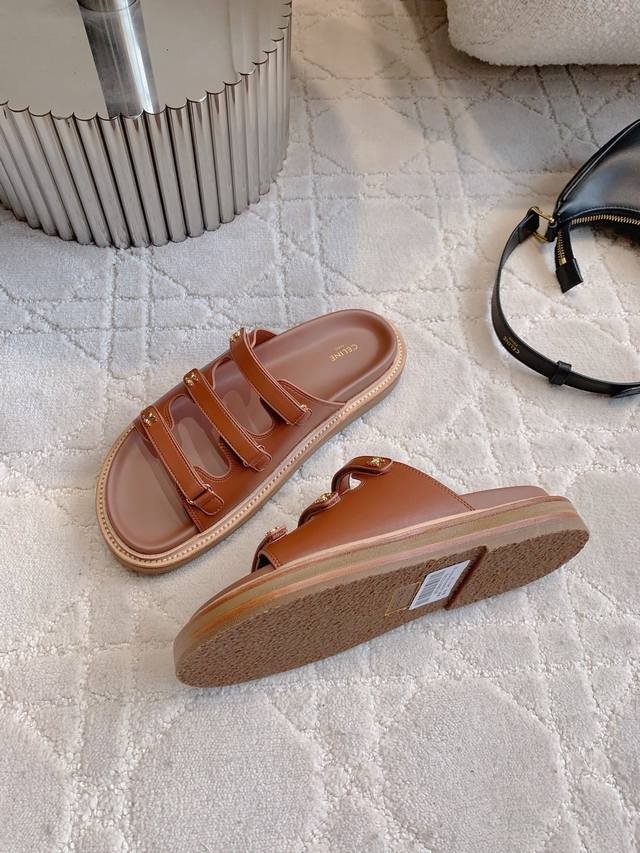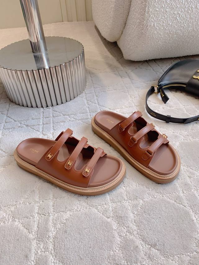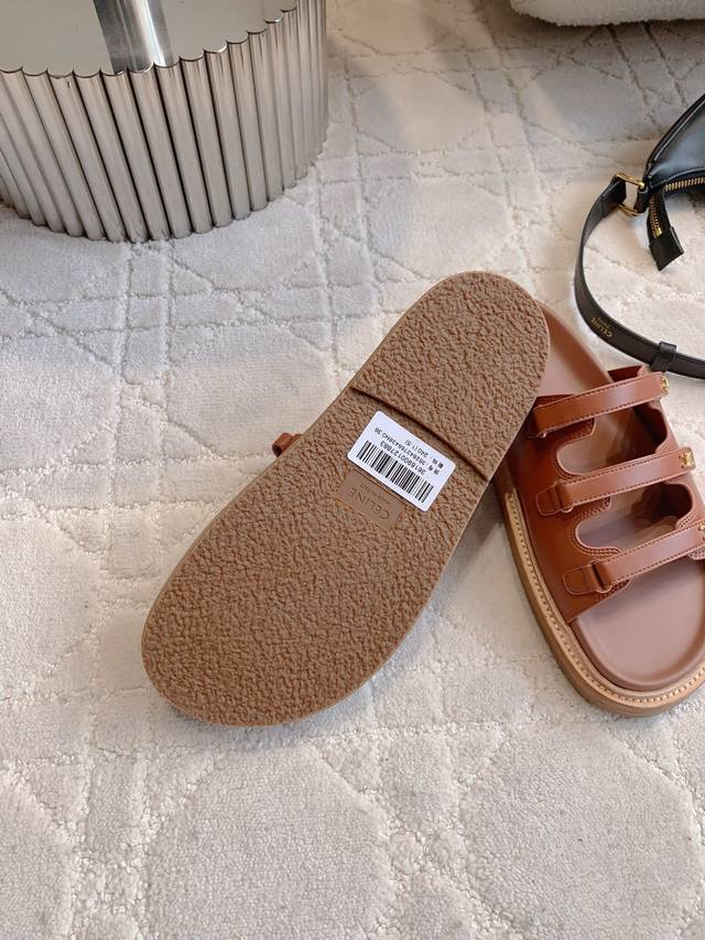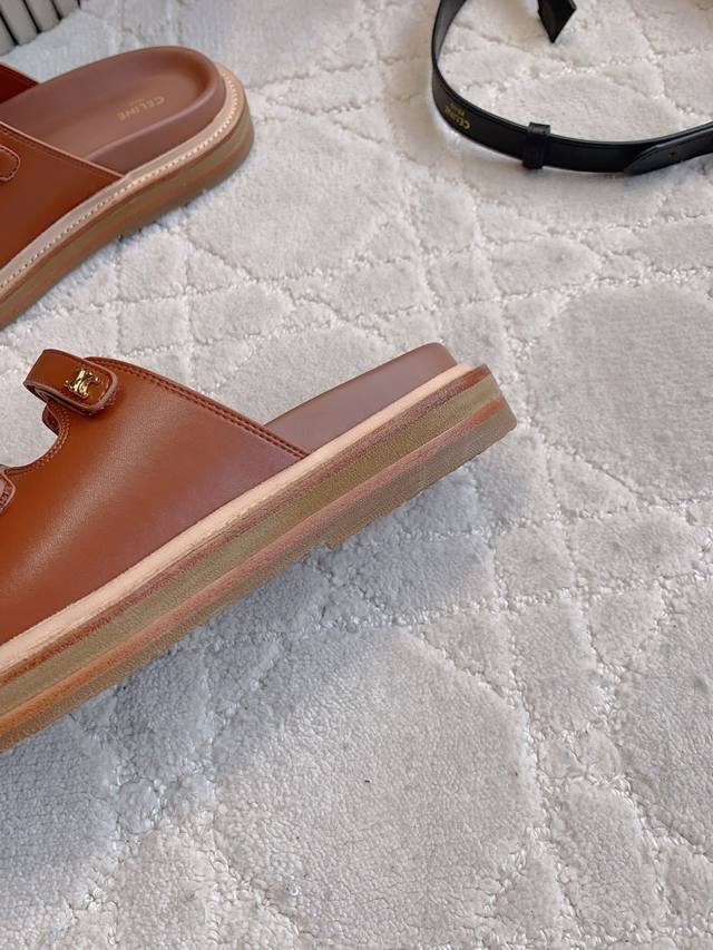 Celin*新款厚底拖鞋 经典Logo搭扣装饰简约耐看 Zp购入1:1打造 鞋面原版小牛皮 Zp开模五金 内里垫脚牛皮 原版开模大底 尺码35-39 40 41