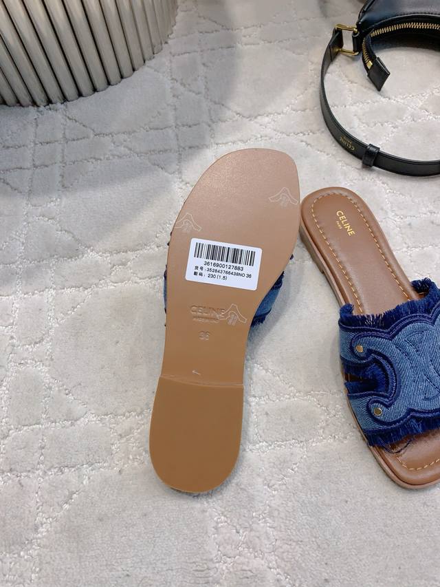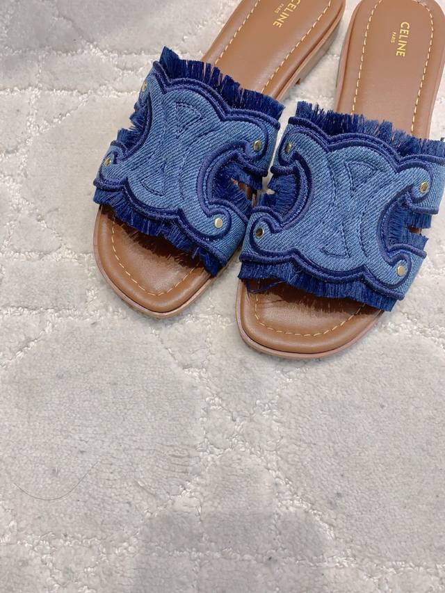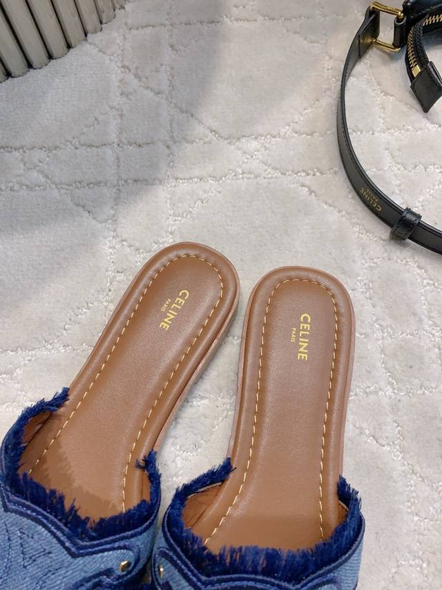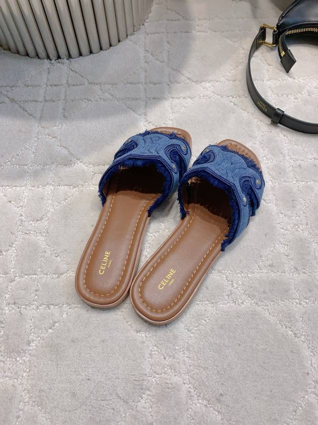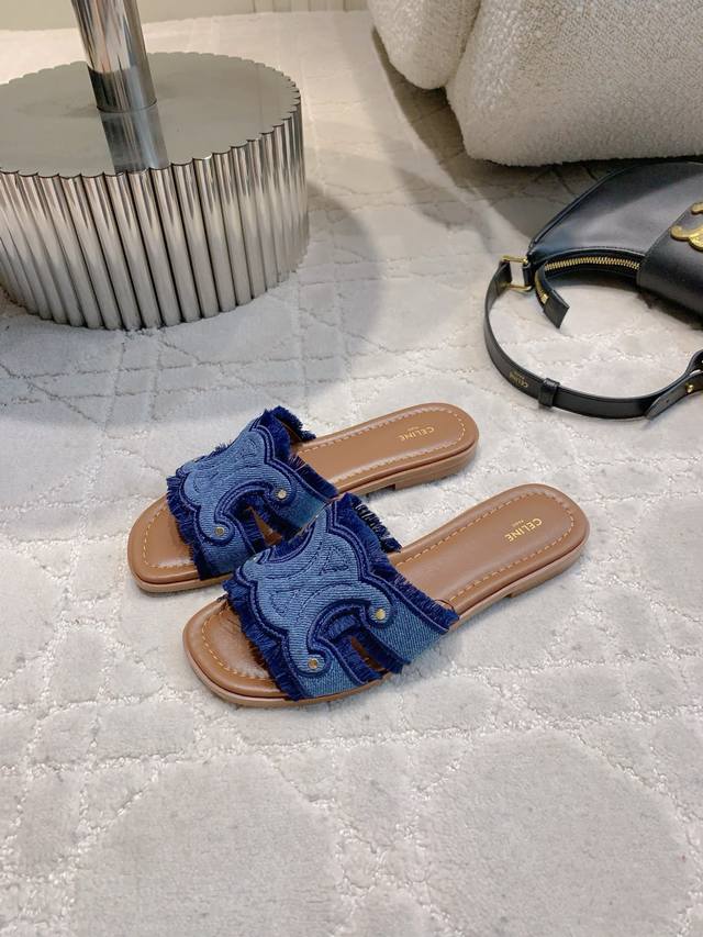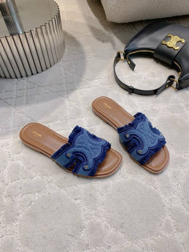 Celin*新款牛仔平底拖鞋 单宁牛仔面料也太好看啦 凸显不一样的感觉 慵懒高级感直接拉满 闭眼入 百搭不挑人 舒适好穿 尺码35-39 40 41订做