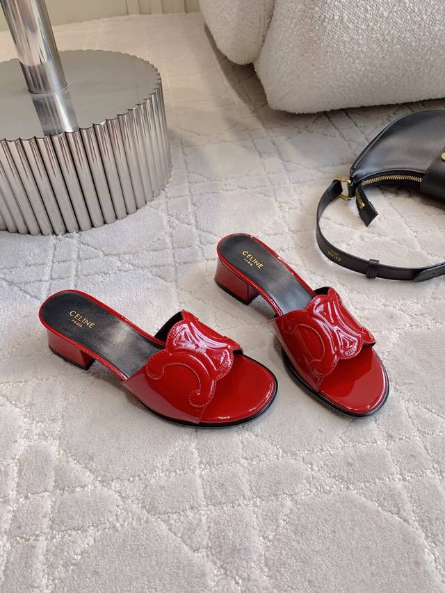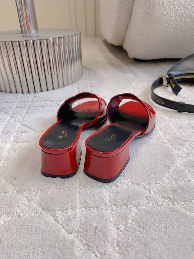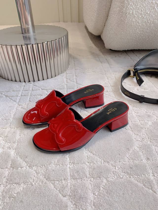 Celin*新款粗跟凉拖鞋 经典Logo搭扣装饰简约耐看 Zp购入1:1打造 经典百搭款 鞋面原版小牛皮 内里垫脚羊皮 意大利真皮大底 跟高3.5Cm 尺码35