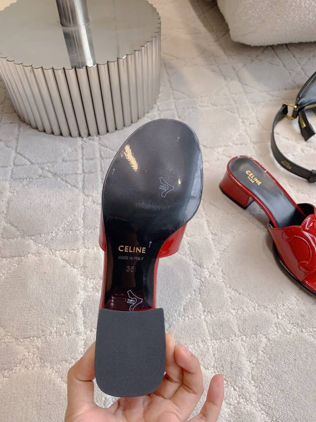 / Celin*新款粗跟凉拖鞋 经典Logo搭扣装饰简约耐看 Zp购入1:1打造 经典百搭款 鞋面原版小牛皮 内里垫脚羊皮 意大利真皮大底 跟高3.5Cm 尺码35
