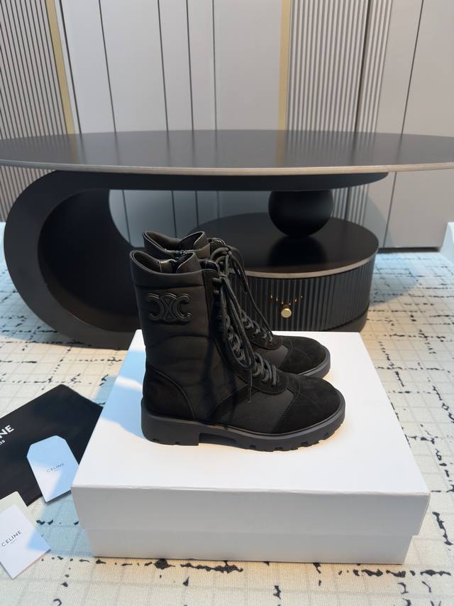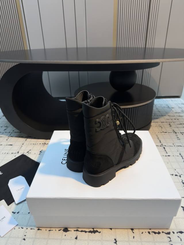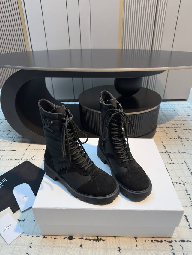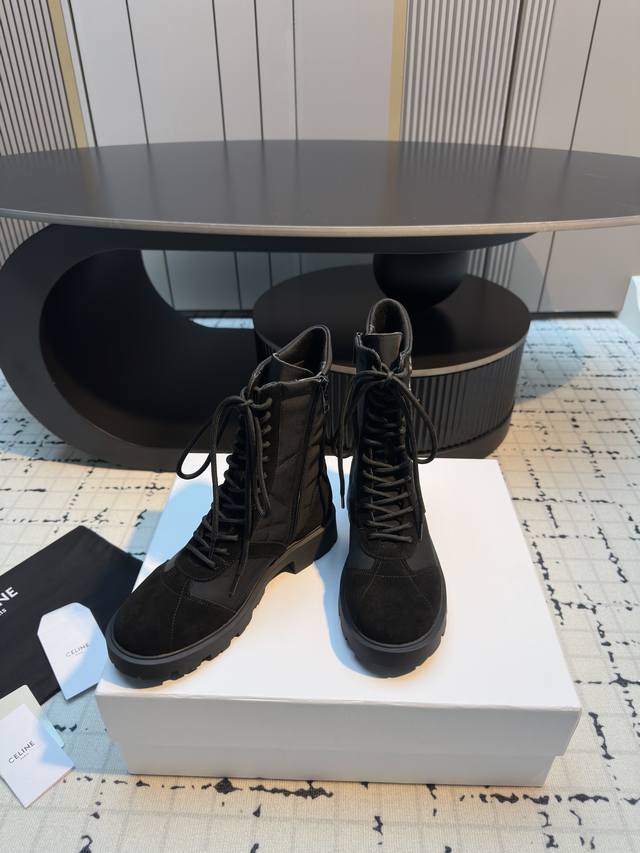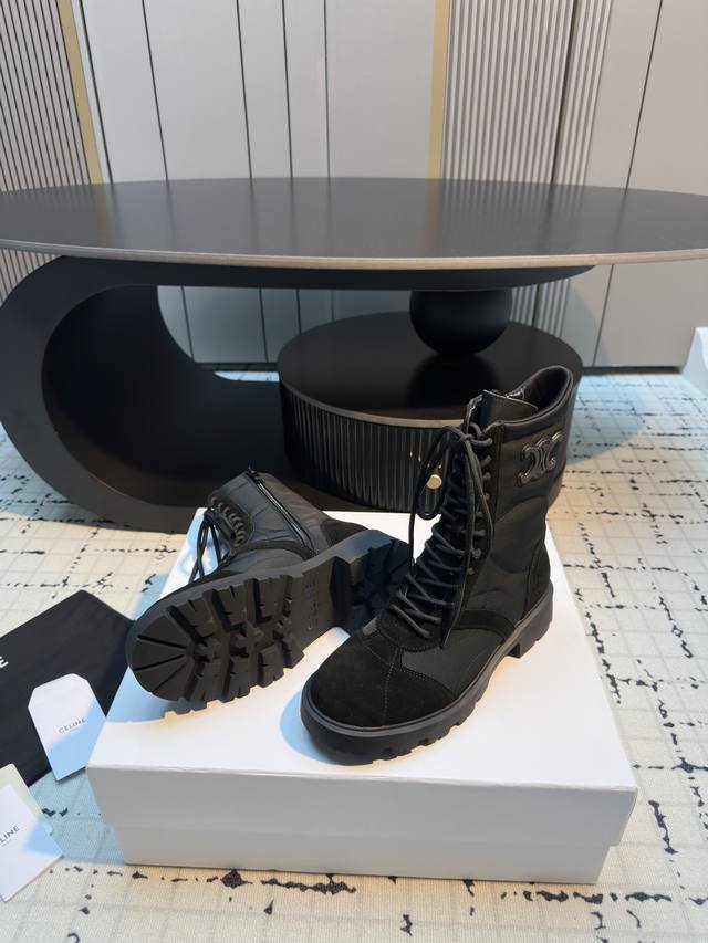 Celin* 秋冬新品玛格丽特马丁靴 中筒靴型,鞋带可调节,能贴合不同脚型;厚底设计,兼具增高与修饰腿型的效果,让腿部线条更显纤细。橡胶大底,抓地力强且耐磨,日