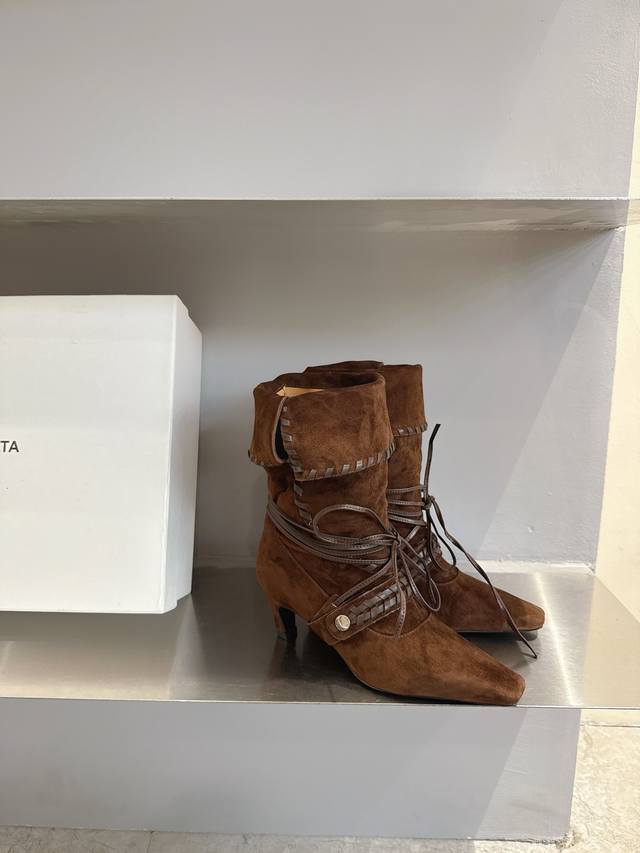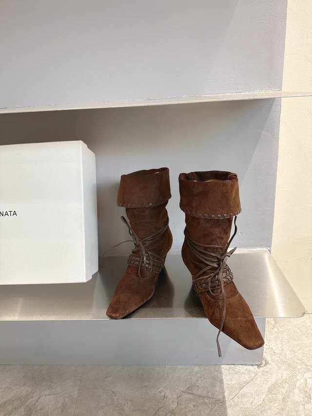 / Cello Sonat*25Aw新品游牧风复古麂皮编织中靴 把复古时髦玩明白了 尖头皮质+绑带设计 极致柔软细腻搭配同色系编织条带 自带神秘故事感。 卷边靴筒藏