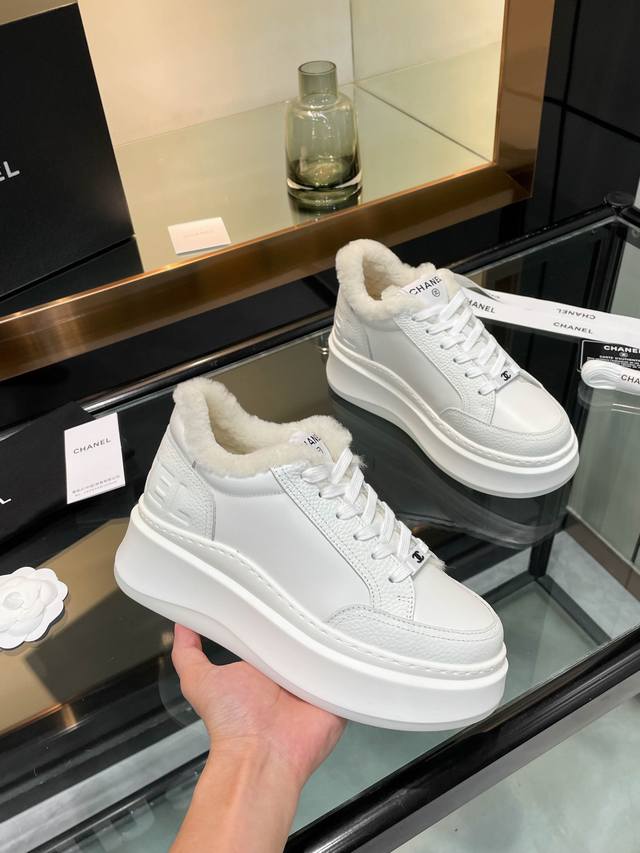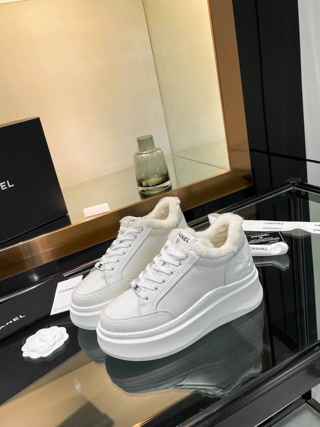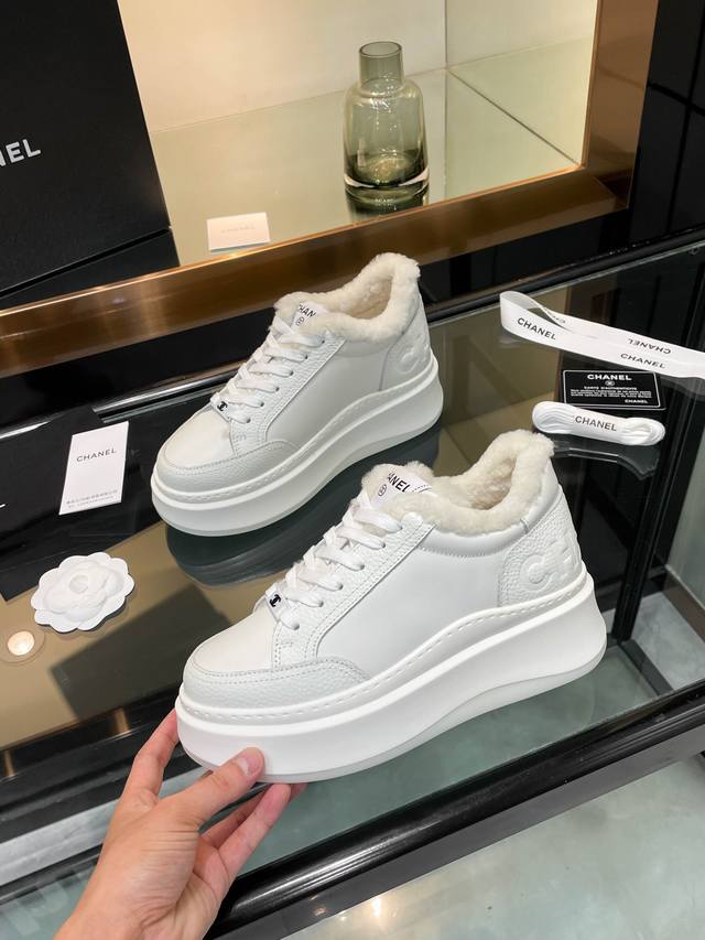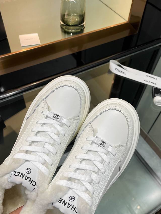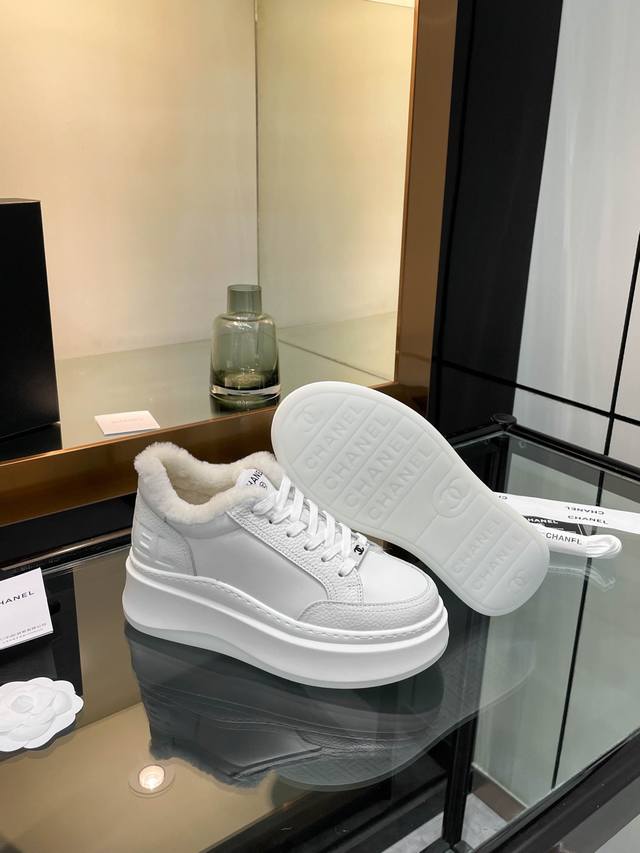 Chanl* 2025Sw网红明星同款 专柜最新走秀主打系列上新款, 牛皮字母一比一原版排列搭配。 内里垫脚:澳洲100%毛里。保暖超舒适。大底:私模稀模超轻Tpu大底 码: 34-40 40码不退不换 DDD 配原版全套包装。 DDD