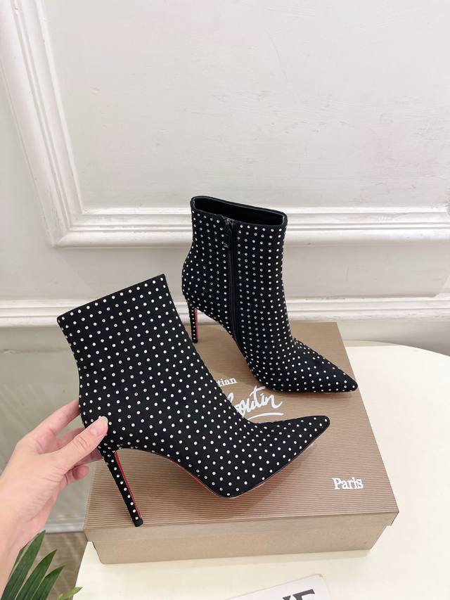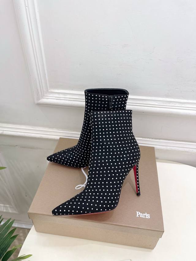 Christian Louboutin路铂廷Cl 红底鞋 25Ss最新Cl尖头侧拉链高跟短靴 切尔西短靴系列,魅惑华丽的顶级硬货上新 DDD Bs明星同款,平台主播、网红博主倾情演绎,时尚优雅气质 尽显性感妖娆女人味。仙气逼人~经典高贵优雅 DDD 面料:原版定制牛皮 牛漆皮 DDD 内里:进口羊皮内里 DDD 大底:原版真皮大底 DDD 跟高:10.5Cm DDD 码数:35-39 40.41.42.43可定做 DDD 出厂价pp: DDD