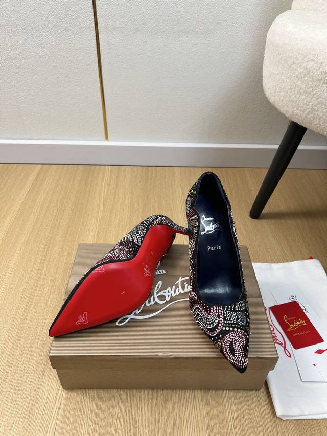 Christian Louboutin 2025 DDD Cl家2025春夏新品 专柜最新爆款Cl红底鞋高跟尖头彩钻单鞋短靴鞋系列 DDD 原版购入开发 做货 除了好看一无是处的高跟鞋水钻高跟鞋女士凉鞋,水钻点缀以精致大钻,闪耀灵动盈润完美味儿特别纯正 名媛气质女人味十足,脚感满分夏天真的太需要百搭鞋了,怎么搭配都好看,随意且高级的感觉舒适度也很棒,搭配各种短裤短裙,潮爆了 超好看百搭 水钻搭配设计完美融合在俏皮和优雅问无缝切换的快乐,穿上它跳起欢快的摇摆舞吧 DDD 鞋面:原版定制面料 DDD 内里:羊