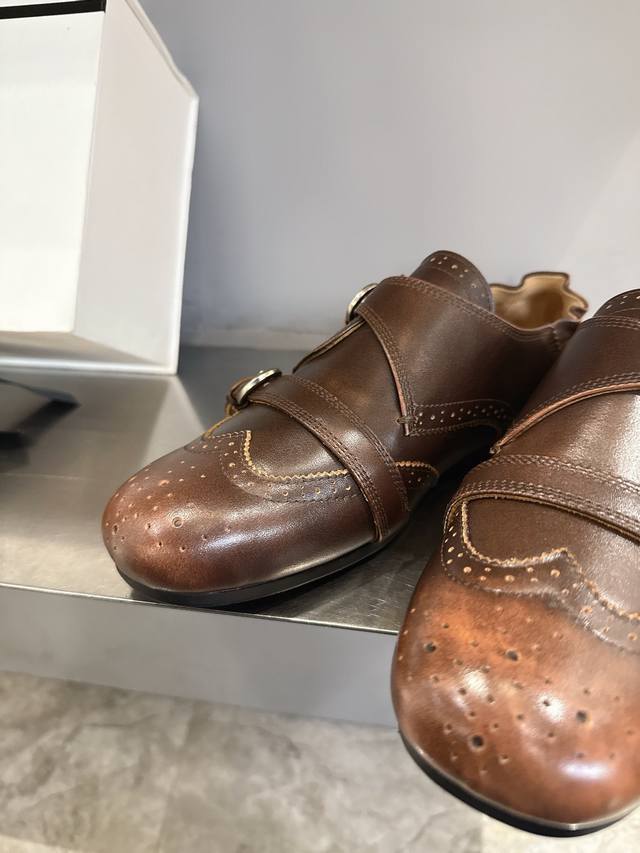 Cotem* 复古双扣雕花乐福鞋 DDD 融合复古与现代感,采用孟克鞋结构,双扣带设计经典且具辨识度;鞋头的布洛克雕花元素增添复古精致感,鞋口的波浪形边缘则注入柔美元素,平衡硬朗风格。 DDD 鞋面:牛皮 牛反绒 DDD 内里:牛皮 DDD 大底:橡胶大底 DDD 增高:4Cm DDD Size:35-41 40-41定制不退换 DDD