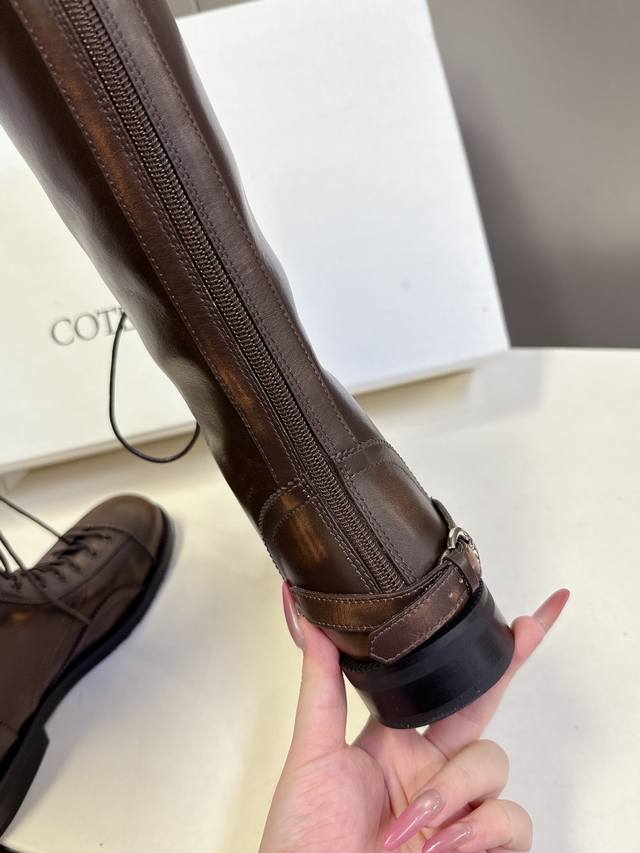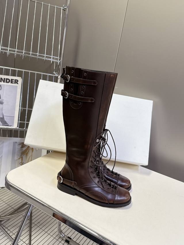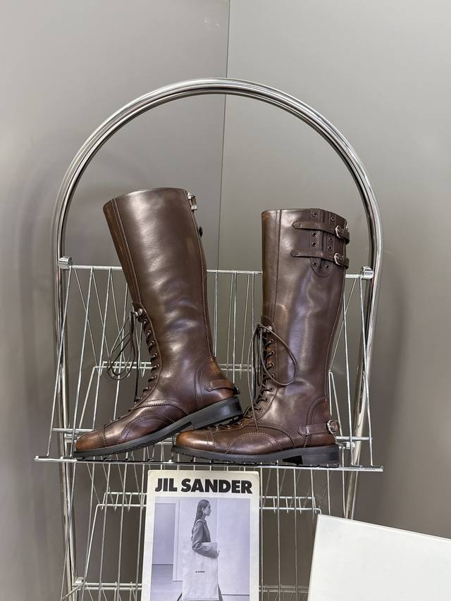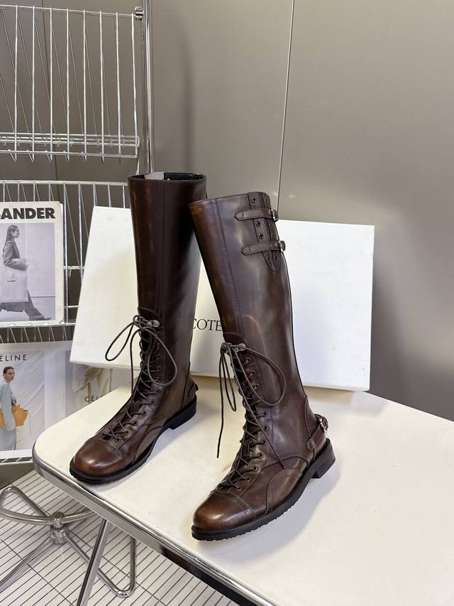 Cotemp小众品牌秋冬最新款 复古做旧坦克靴 超多明星网红种草 延续了经典坦克步靴的靴筒包裹性与多重固定元素,绑带从鞋口延伸到鞋头处,搭配多个金属做旧银扣,可灵活调节脚背舒适度,或散落穿着更显慵懒随意,后跟带有拉链设计便于穿脱。鞋面精选经过做旧工艺处理过的柔软蜡感牛皮,自带褶皱纹理,点缀缝线花边包裹,细节精致,打造秋冬复古质感 面料:进口小擦色牛皮 内里:牛皮内里 鞋底:原版开模防滑大底Size:35-40 40定制不退不换