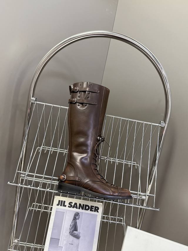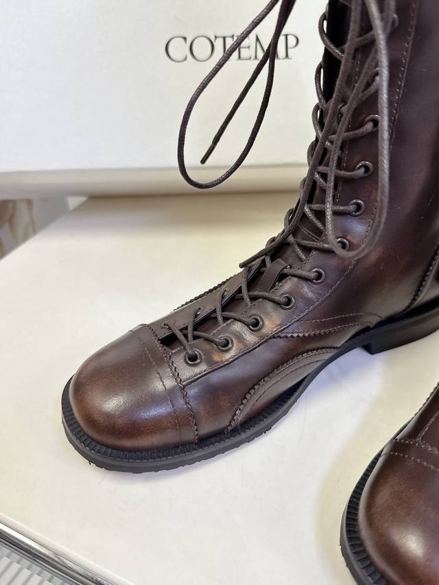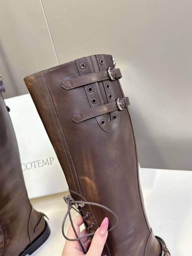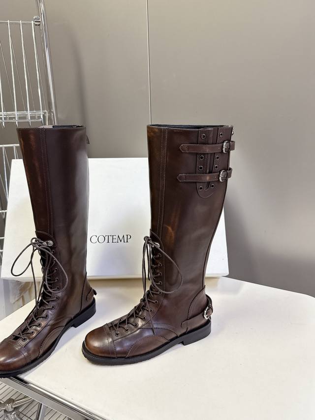 / Cotemp小众品牌秋冬最新款 复古做旧坦克靴 超多明星网红种草 延续了经典坦克步靴的靴筒包裹性与多重固定元素,绑带从鞋口延伸到鞋头处,搭配多个金属做旧银扣,可