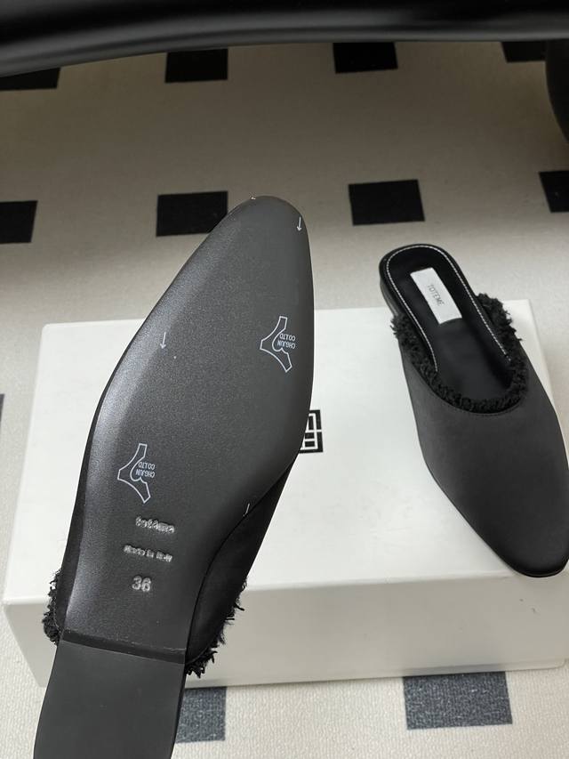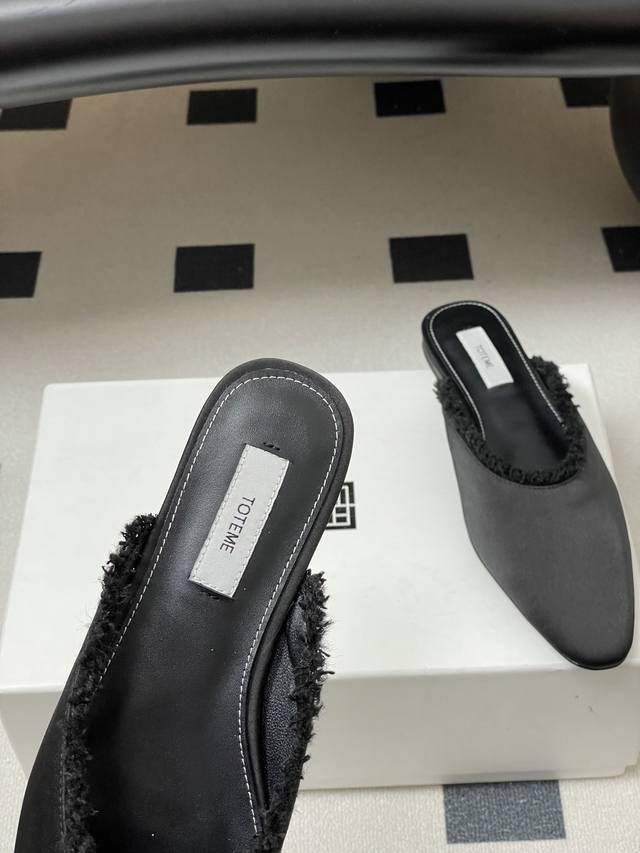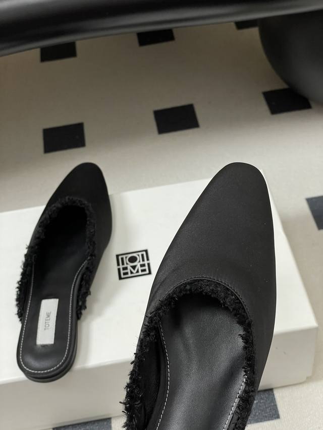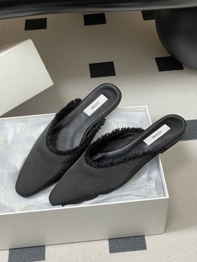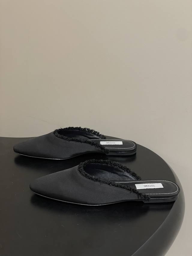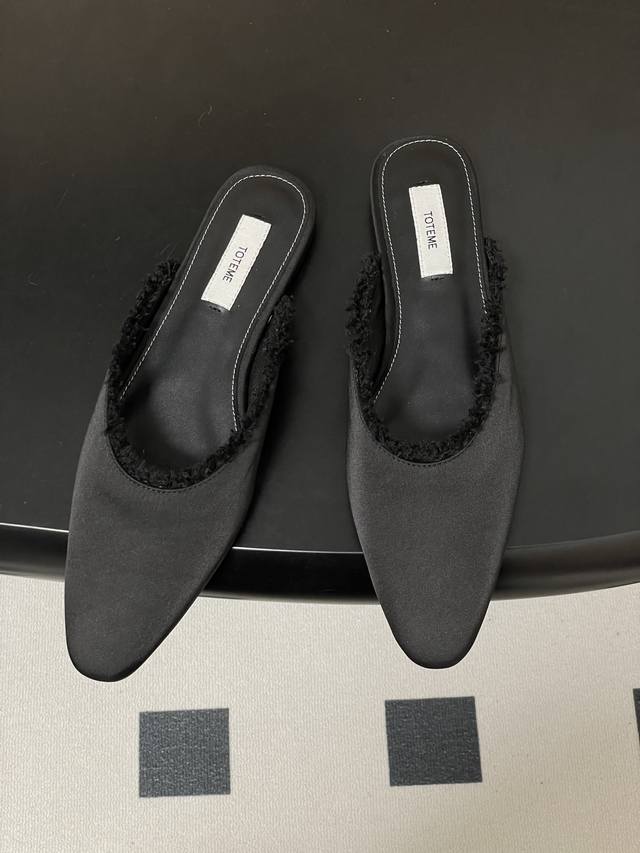 FFF DDD Toteme 26S春夏新款 小众北欧极简风平底包头半拖鞋复古风穆勒半拖鞋 DDD 微微收窄的尖头设计,能在视觉上拉长腿部线条,兼具修饰腿型的效果与法式慵懒感。无后跟的穆勒款式,穿脱方便,既保留了单鞋的精致感,又具备拖鞋的舒适随性。 DDD 自带复古暖意,适合搭配同色系羊毛半裙、燕麦色针织衫,打造秋冬氛围感穿搭。百搭不出错,可与白色衬衫、直筒牛仔裤组合,也能搭配西装套装,轻松适配通勤与休闲场景。 DDD 穿着特别特别舒服,上脚特别时髦百搭,颜色很正的经典色! DDD 鞋面:真丝绸缎 DDD
