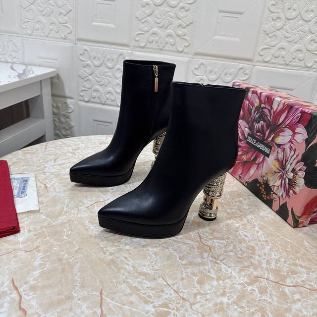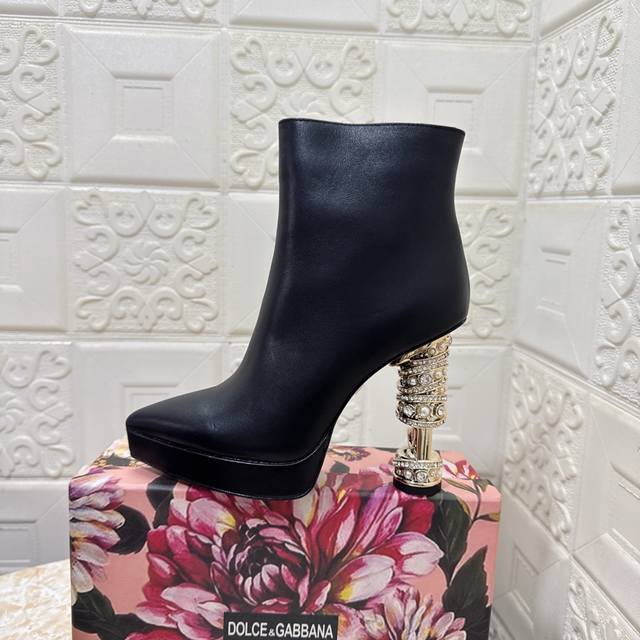 Dg.顶级版本.高品质 2025新款 Dg钻跟短靴 鞋面:黑色牛皮 咖啡色牛皮 内里:羊皮 跟高: 12.5Cm。水台2Cm 大底:A级原版黑色真皮大底 码数: