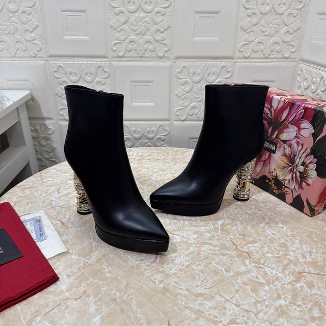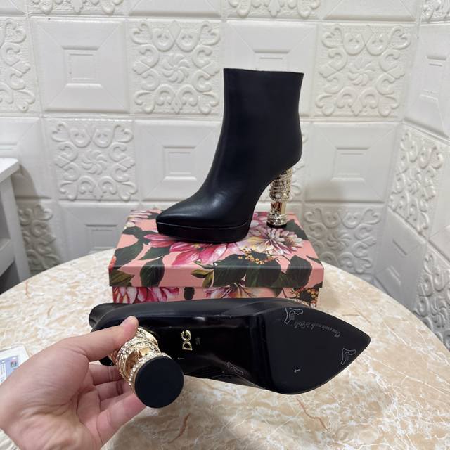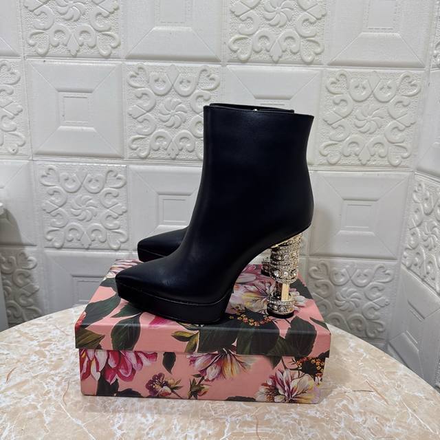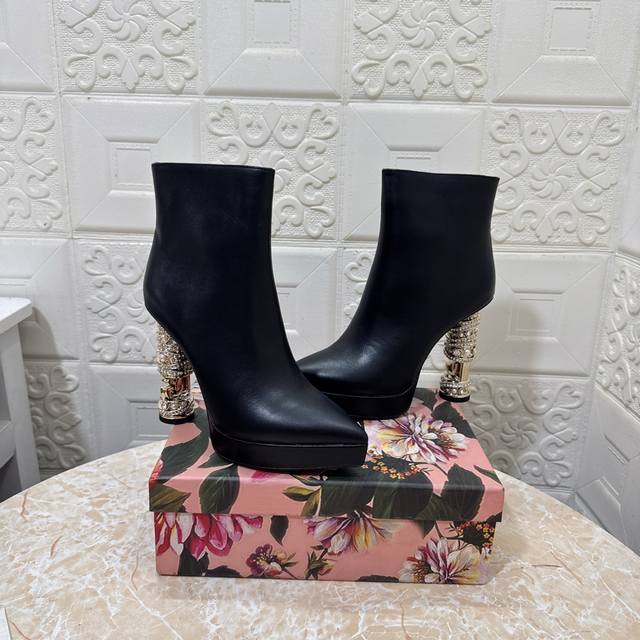 / Dg.顶级版本.高品质 2025新款 Dg钻跟短靴 鞋面:黑色牛皮 咖啡色牛皮 内里:羊皮 跟高: 12.5Cm。水台2Cm 大底:A级原版黑色真皮大底 码数: