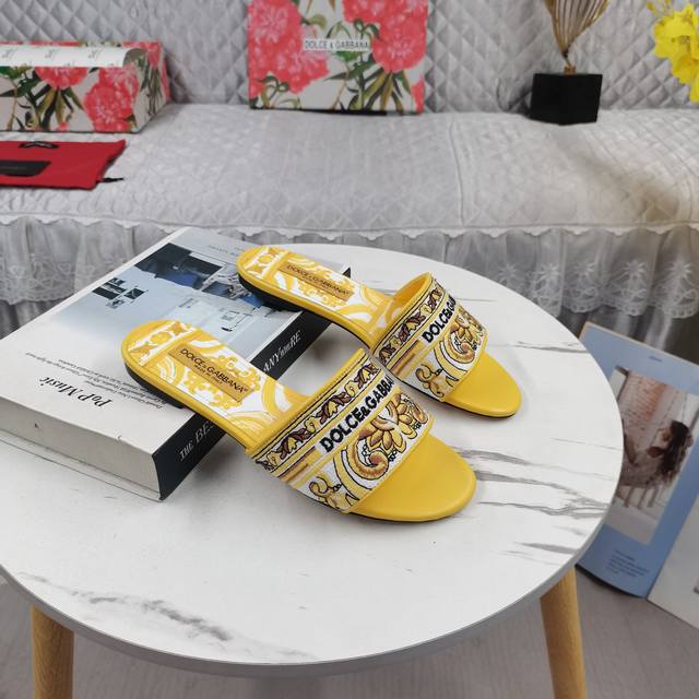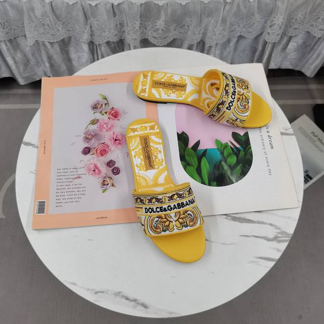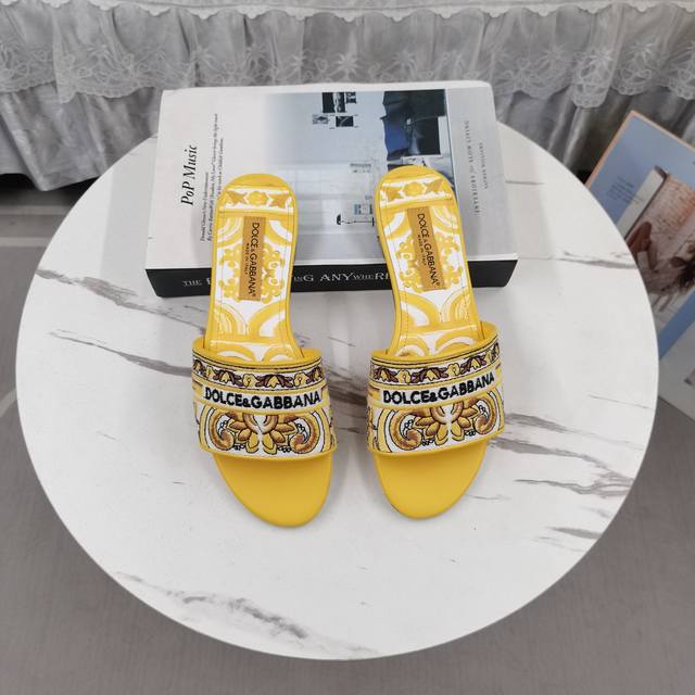 Dg 顶级高版本 专柜同步爆款电绣+3D打印拖鞋 原版一致面料 细节处理完美 垫脚牛皮3D打印 质感细腻 Aaa级意大利真皮大底 极致完美复刻 1鞋面:进口面料电绣工艺 2垫脚:进口牛皮3D打印 3鞋底:Aaa级真皮大底 4Size:34-43 34 41 42 43订做不退换 5跟高:平底款 中跟款6.5Cm 6Clour:黄色 玫红色 黑色 紫色 P平底 中跟