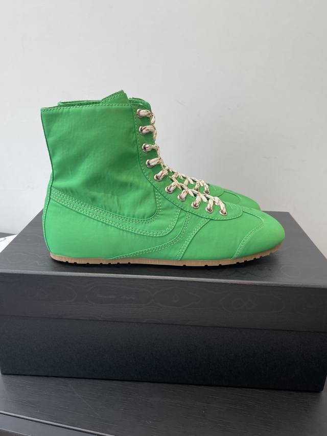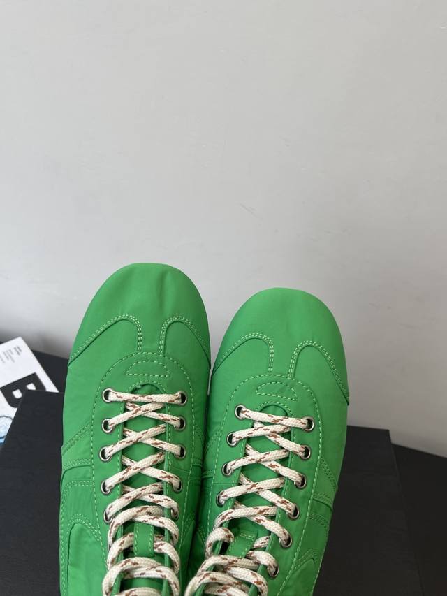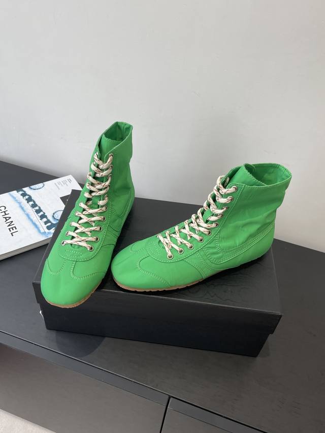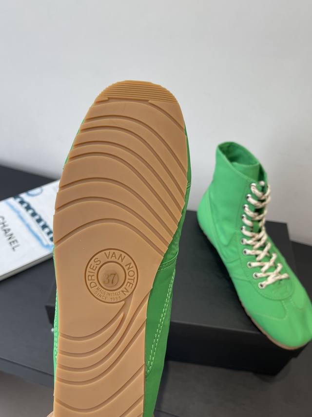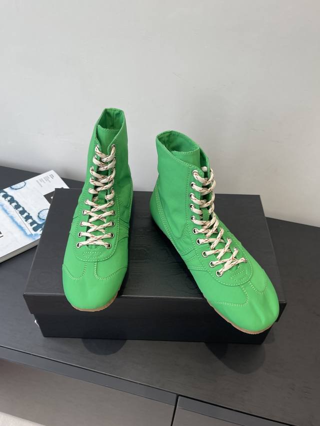 Dries Van Noten 2026春夏新款休闲运动鞋 本季 Dvn将经典训练鞋全面回归,延续品牌一贯的诗意色彩 融合柔美面料与复古结构,打造出一系列“优雅运动”风格鞋款 DDD 缎面与麂皮并置 细腻麂皮到丝感缎面 鞋面材质构建出“运动X轻奢”语汇 复古轮廓升级,延续经典拳击鞋结构 低帮 中帮 高帮轮廓全面覆盖 致敬90年代搏击与训练文化 鞋底保持轻质复古胶底 DDD 全新色彩系统 唤醒春夏感官体验 清新马卡龙、饱和亮色、与中性经典共同构建“全色系运动鞋衣橱” 高丝光绸缎面 橡胶大底 码数;女35-4