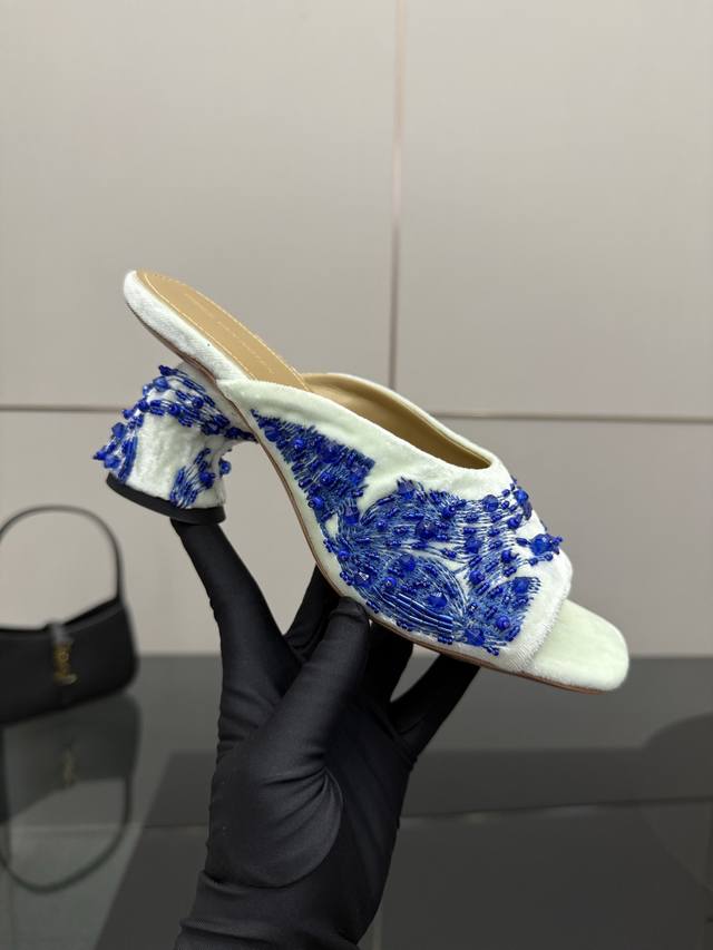 Dries Van Noten 25Ss 新款凉拖 每一双都美的像艺术品 上脚一定是非常瞩目的单品 仙女们可以冲 当代女性应该自己拥有的“水晶鞋” 鞋面:绒布串