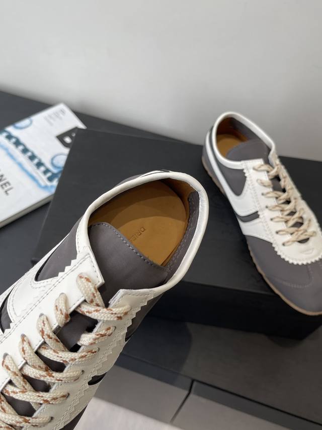 Dries Van Noten Dvn 马拉松复古德训鞋 情侣款 设计师通过改造 扭曲和颠覆经典元素 打造出实用而富有设计感实穿的运动鞋履 DDD 鞋面由麂皮 柔软牛皮等材质拼接而成 并搭配今年流行的尼龙扭绳鞋带 实用性与时尚性得到完美的平衡码数:35-45 女40 男45定做 DDD