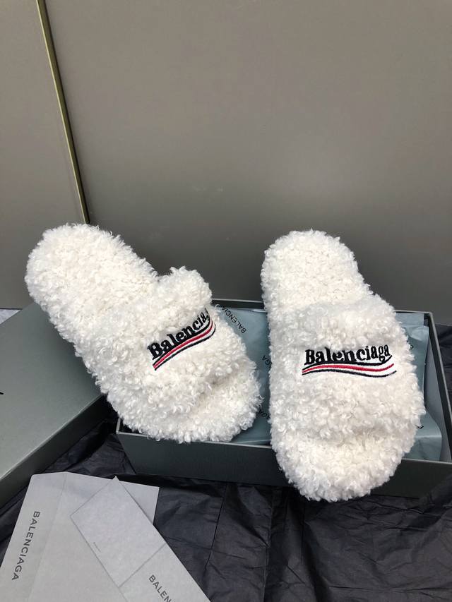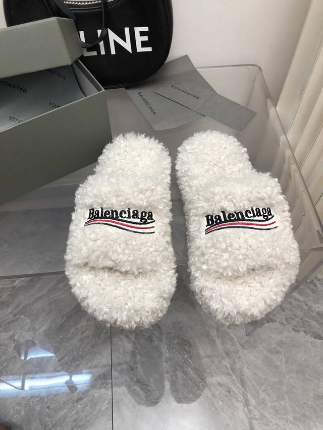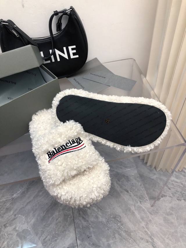 Fw225 New Arrival-~ 巴黎 厚底毛拖鞋 本身就是时髦决绝子单品,鞋底增高到5Cm 妙变长腿的毛拖还是少 Size 35-41 2025