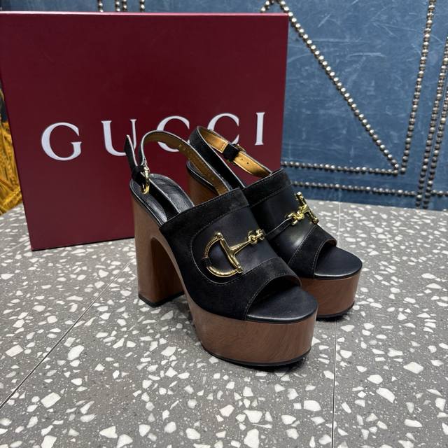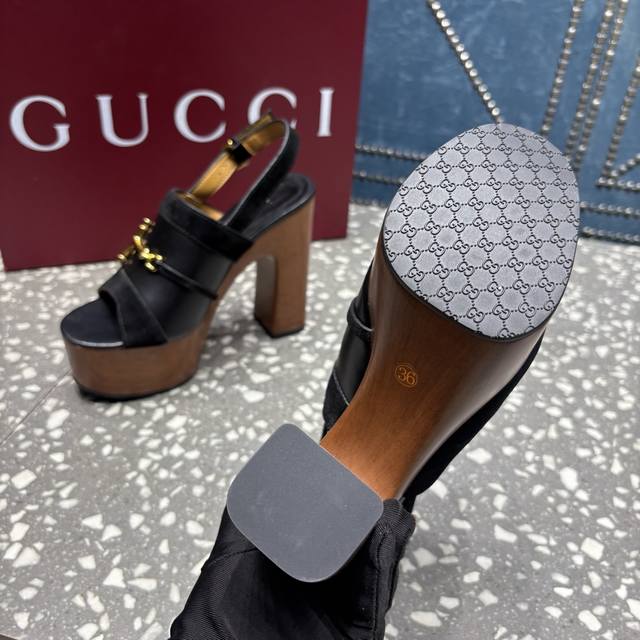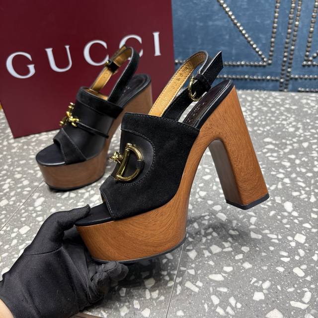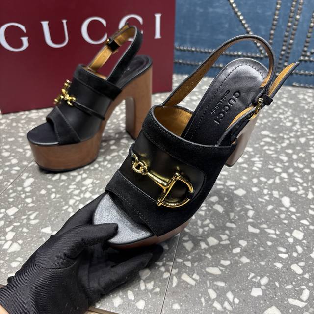 专柜夏季最新小双G扣和大块皮D字扣防水台凉鞋