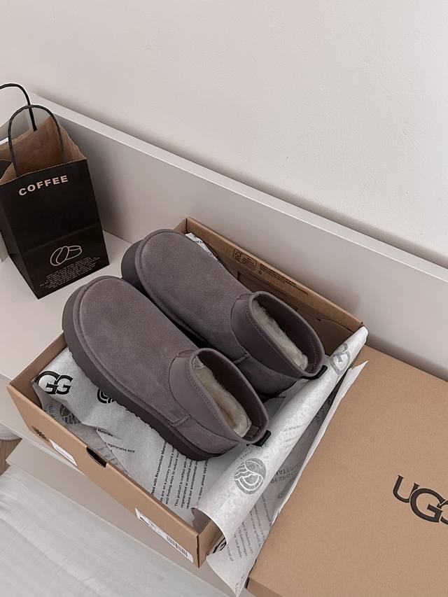 G . 1168170 经典Mini迪普靴 24新款女士休闲舒适经典迪普靴!防滑耐磨的Treadlite By Ugg.轻翼大底,将带来新奇别致的温暖和舒适体验 品名:Ciassic Dipper 鞋面:牛刨层革 鞋里:纯羊毛 皮毛原产地:澳大利亚、欧洲或美国 Size:35 40