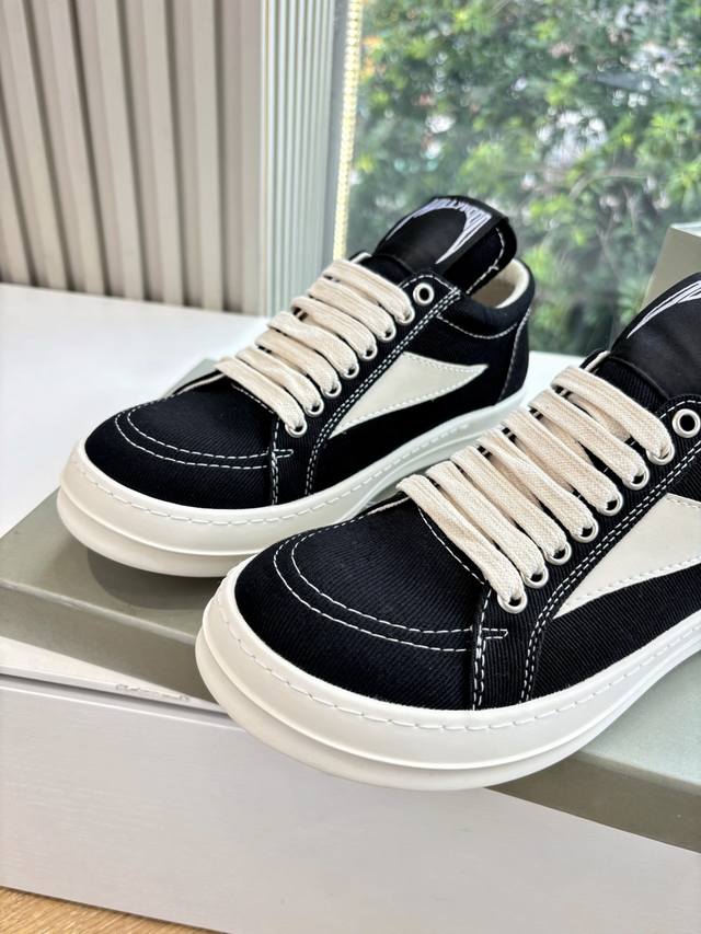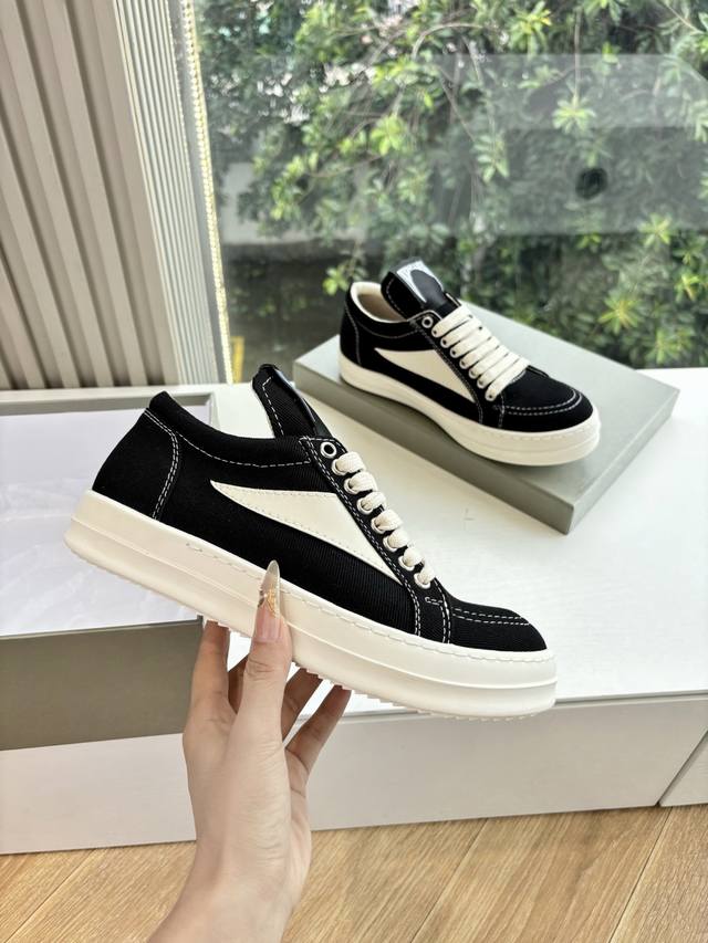 G0135代购级别Rick Owens 瑞克 欧文斯2025秋冬情侣系列Edfu全粒面小牛皮复古运动鞋休闲鞋 面料:原版材质 内里:羊皮 尺码:36-40 38.39.40.下单备注男女 男码:38-47 38.45-47定制不退不换