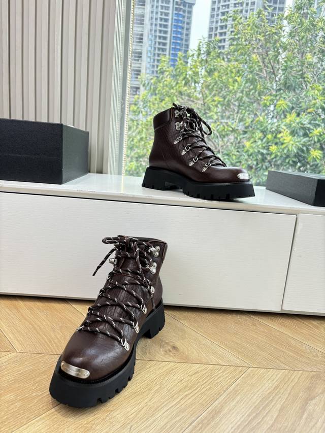 / G013Alexander Wang 大王25Ss新款 系带 厚底 短靴马丁靴大王这双厚底短靴 绝对是腿精必备神器 显高显瘦,黑色经典百搭王~~ 皮面搭配激光L