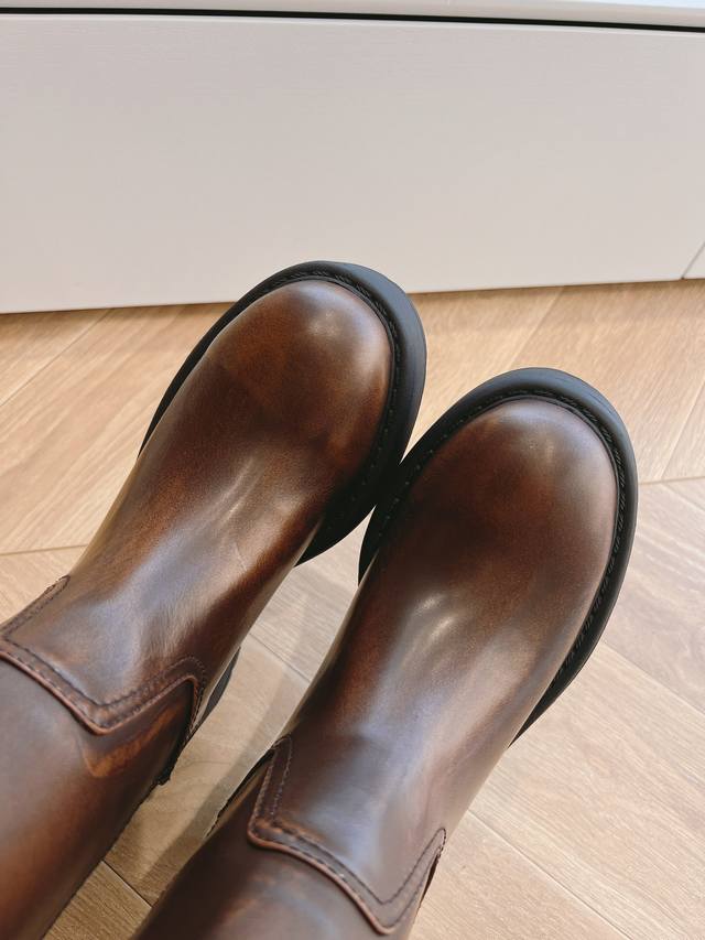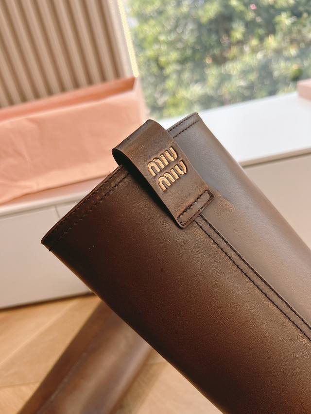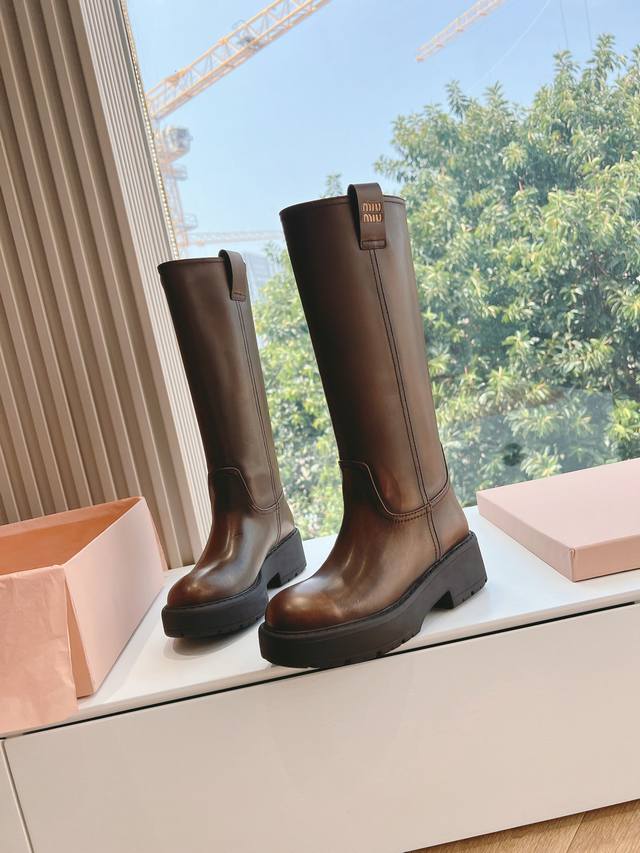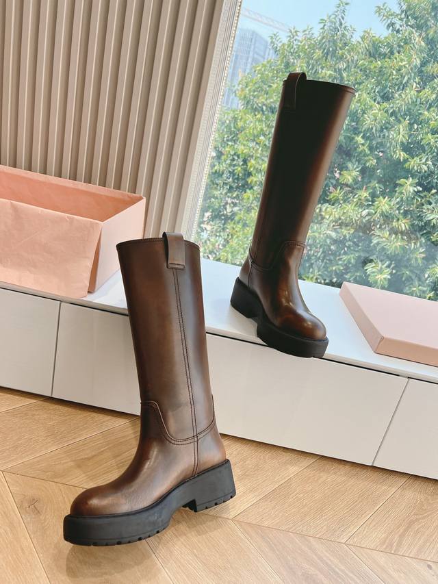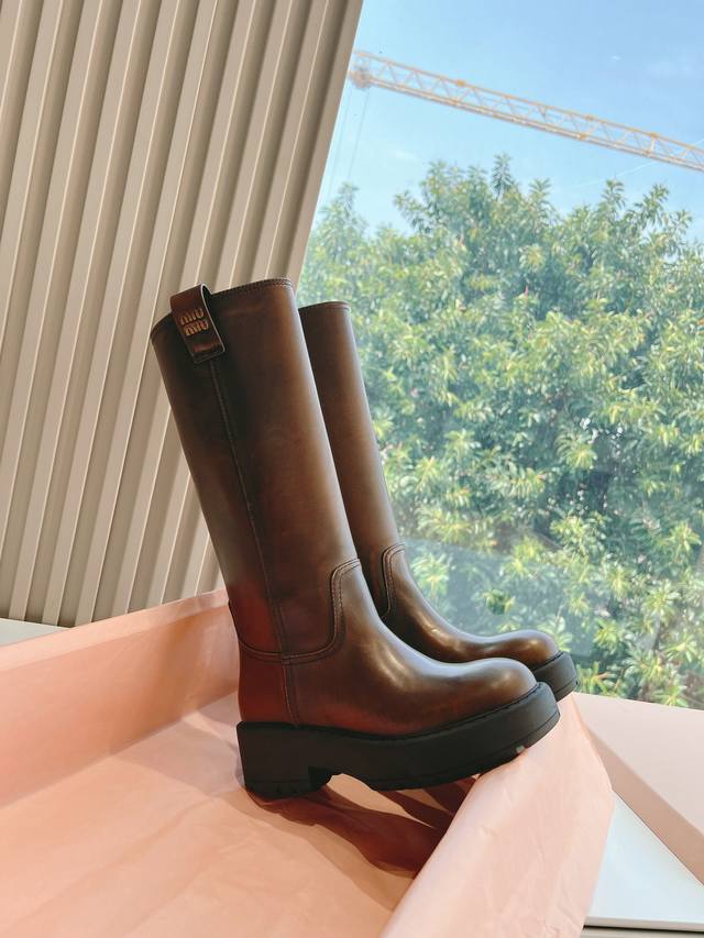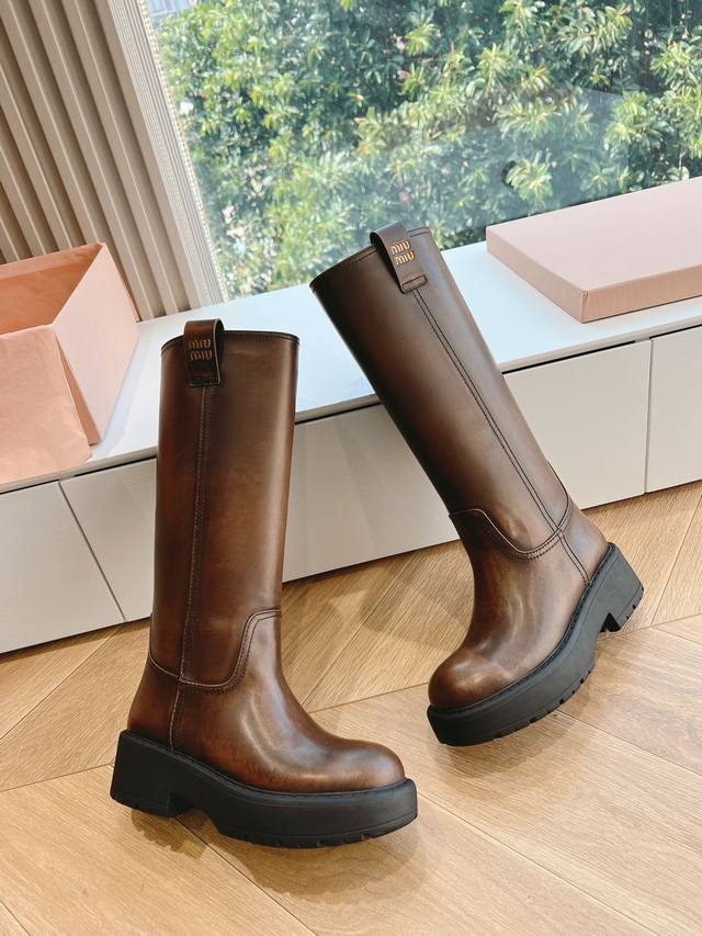 G0286独家首发Miumiu*缪缪厚底不过膝骑士靴女2025新款英伦机车筒靴 怎么穿都好看今夏时髦精最爱 看起来不怎么舒服 上脚超级舒服 超级重工 每一双都是独一无二不对寸的擦色效果 面料:进口擦色牛皮 内里:牛皮 大底:原版鞋底 码数:35-40 40.订做不退换