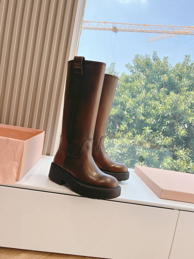G0286独家首发Miumiu*缪缪厚底不过膝骑士靴女2025新款英伦机车筒靴 怎么穿都好看今夏时髦精最爱 看起来不怎么舒服 上脚超级舒服 超级重工 每一双都是