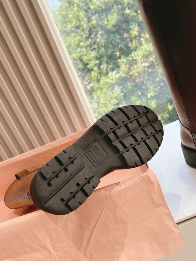 / G0286独家首发Miumiu*缪缪厚底不过膝骑士靴女2025新款英伦机车筒靴 怎么穿都好看今夏时髦精最爱 看起来不怎么舒服 上脚超级舒服 超级重工 每一双都是