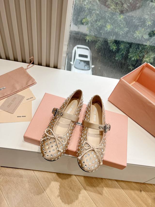 / G0286现货供应顶级版本Miu Miu 缪缪女士蝴蝶结装饰缎面芭蕾舞平底鞋独家高版 Miu Mi* 24平底小羊皮半拖Zp开发 原版秒杀市面版本 Miu真的太