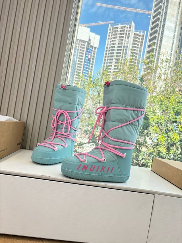 G042所见即所得Inuikii潮牌秋冬秀款羽绒靴滑雪鞋 这款滑雪鞋今年非常爆,色彩搭配非常时尚 超酷个性非常强!潮派炸街!各大网红明星同款!冬季滑雪必备爆款